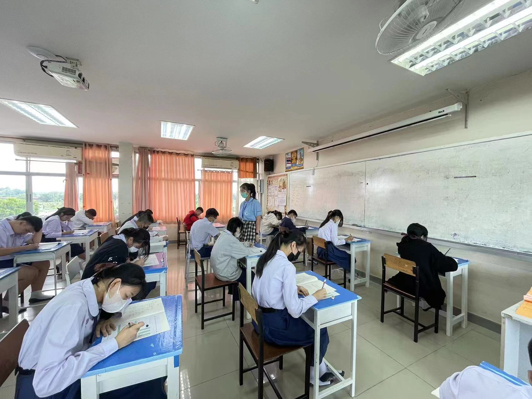 考试结束后,主监考老师认真核对考试信息,确保无误后,考生们有序离开考场。许多学生在离开时面带微笑,向老师们表示感谢,清莱六中的老师们也对孔院老师表示了感谢。
