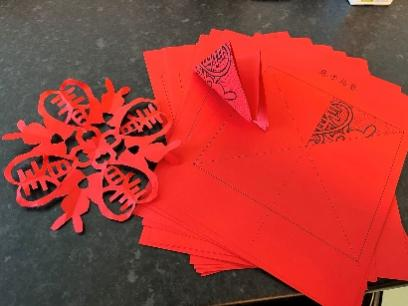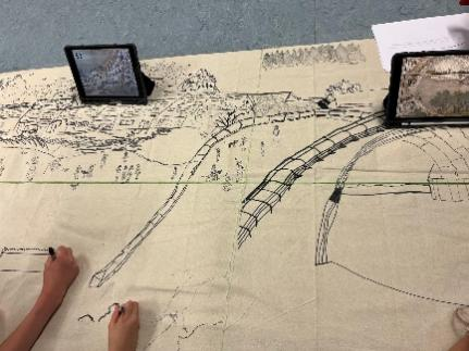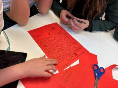 除了中文教学,在沃辛中学还组织和参与了很多中国文化活动,比如春节、端午节、中秋节等的文化体验课,传统中国服饰、探索中国城市文化体验课,包饺子烹饪课,中文开放夜和《清明上河图》集体绘画活动等。让我印象最为深刻的是包饺子体验课,那时学完了有关食物的章节,就为学生上了一堂包饺子的烹饪课。一切食材准备就绪后,我向学生们示范如何包饺子。熟悉了整个流程后,学生们都跃跃欲试,纷纷拿起来饺子皮和筷子开始包饺子。我们一边包饺子,一边回忆课上学过的相关词语和句型,比如“鸡肉”,“牛肉”,“鸡蛋”,“我喜欢吃…”等。学生们最后包出的饺子什么形状的都有,有圆形的像包子一样的,有三角形的,还有像烧麦一样开口的。包好后我们把饺子放到笼屉里蒸熟,出锅后空中弥漫着饺子的香味和大家的欢声笑语,大家争先恐后地品尝自己的劳动果实。还有的学生跟我说饺子太好吃了,这是他第一次吃饺子,要带一些回家给他的父母尝一尝。尽管饺子包得或大或小、奇形怪状,但整堂课大家都兴致勃勃、不亦乐乎,一片热火朝天的景象。一堂一个小时的体验课是短暂的,但留给他们的回味是无穷的。饺子味道鲜美、香气四溢,我相信它浓浓的中国味会一直留在学生们的心里。
