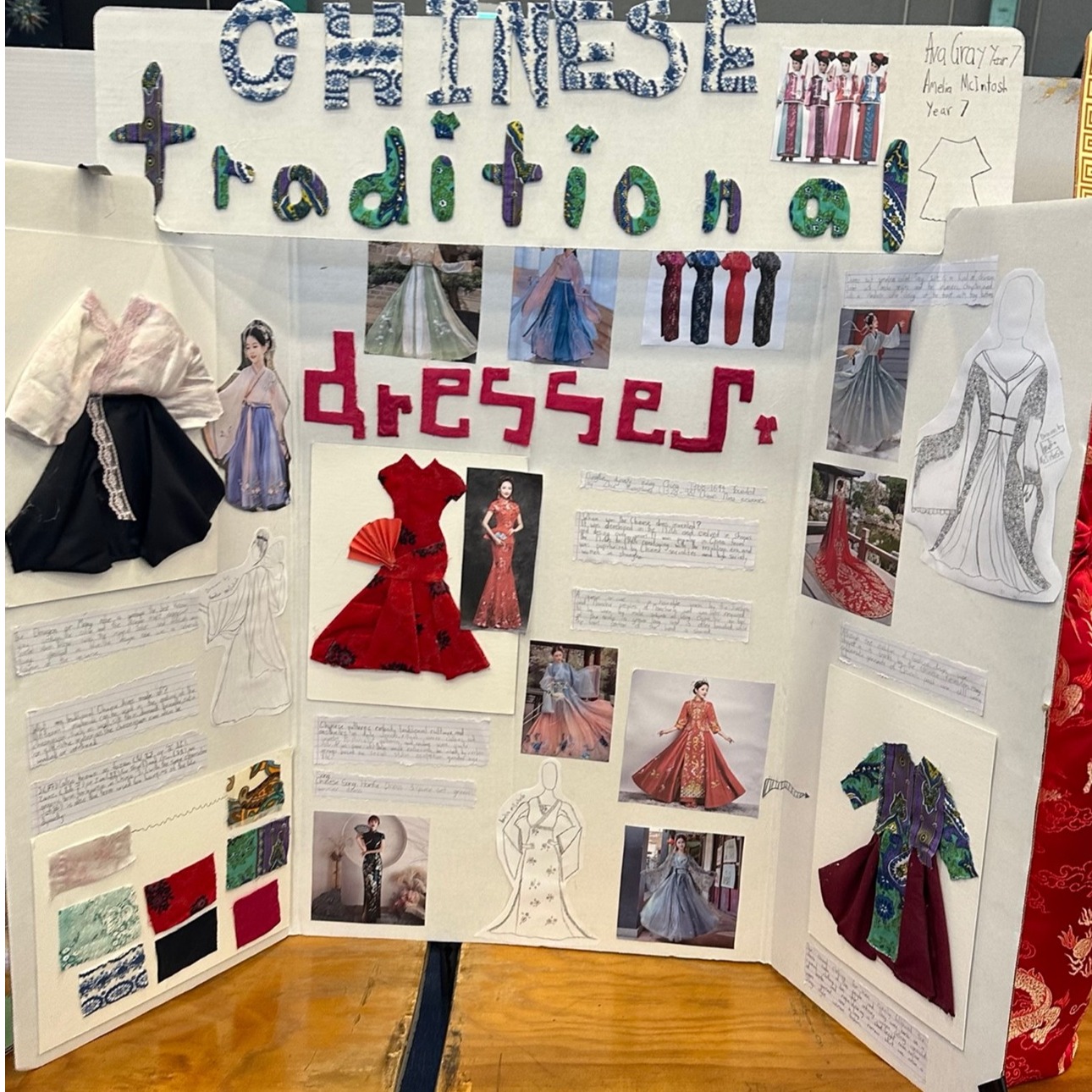 在古今中国研究项目比赛中,许多参赛学生为自己的研究项目工作准备长达数月。他们用手工展板的形式呈现了对过去的中国和现代的中国的深入研究。他们制作的文化展板令人印象十分深刻,充分展示了对博大精深的中华文化的理解与尊重。