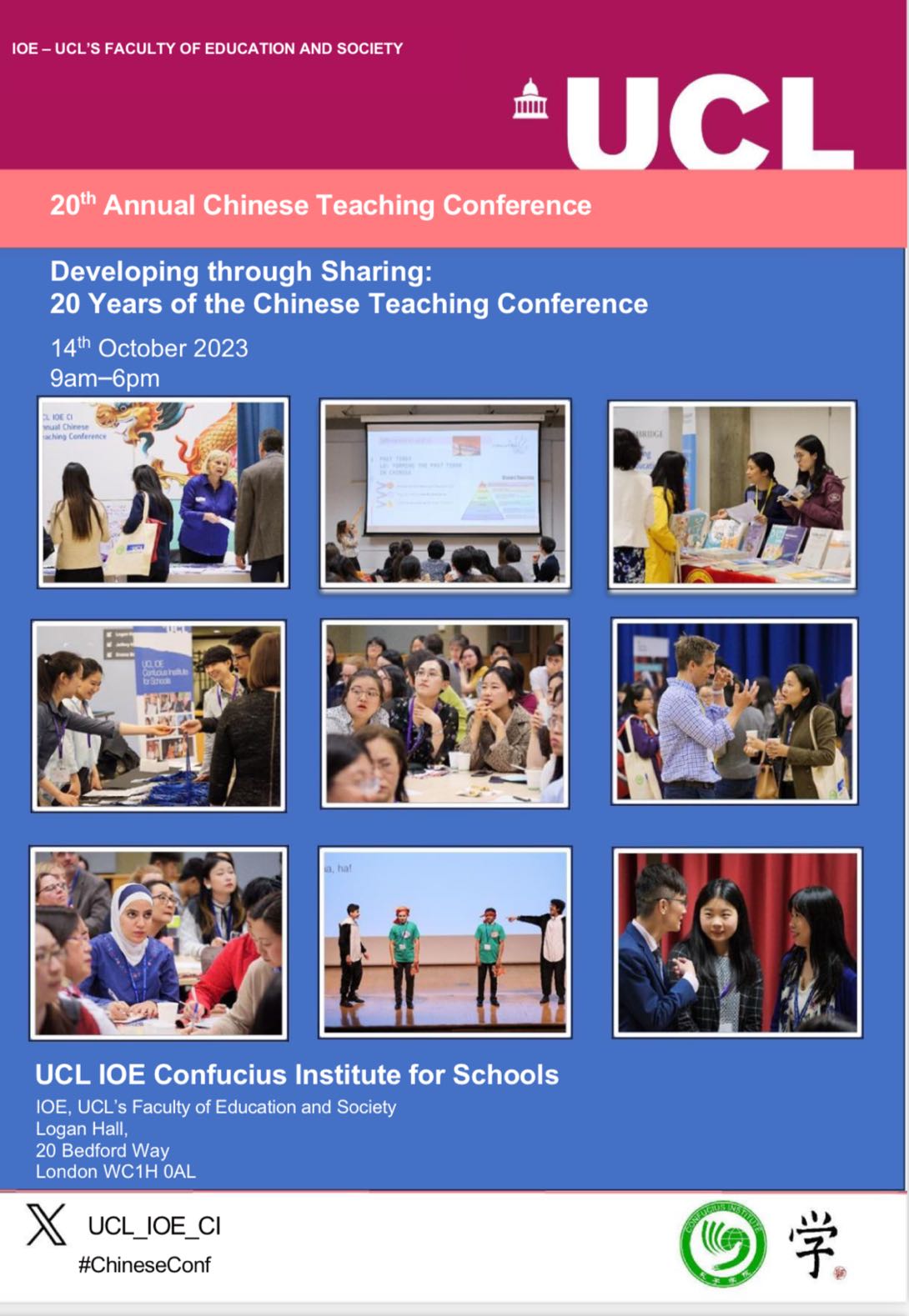 当地时间2023年10月14日,第20届英国中文教学年会在伦敦大学学院(UCL)举行。本次年会主题是回溯二十年来英国汉语教学的成果以及展望未来发展。南安普顿大学孔子学院英方院长郑英博士、下设孔子课堂博航特利普胡克学校中文教师李佳和学生Mira出席了年会。