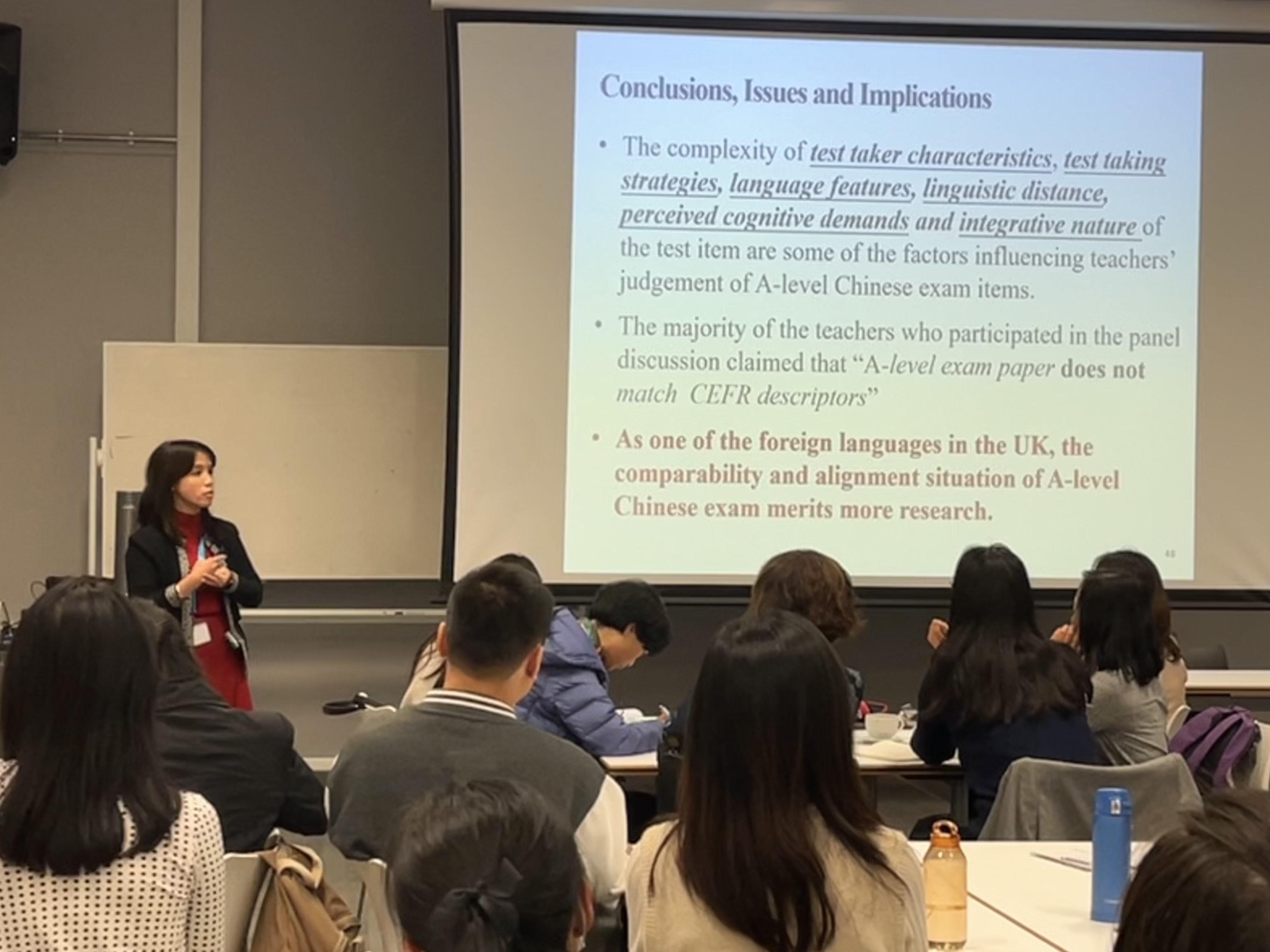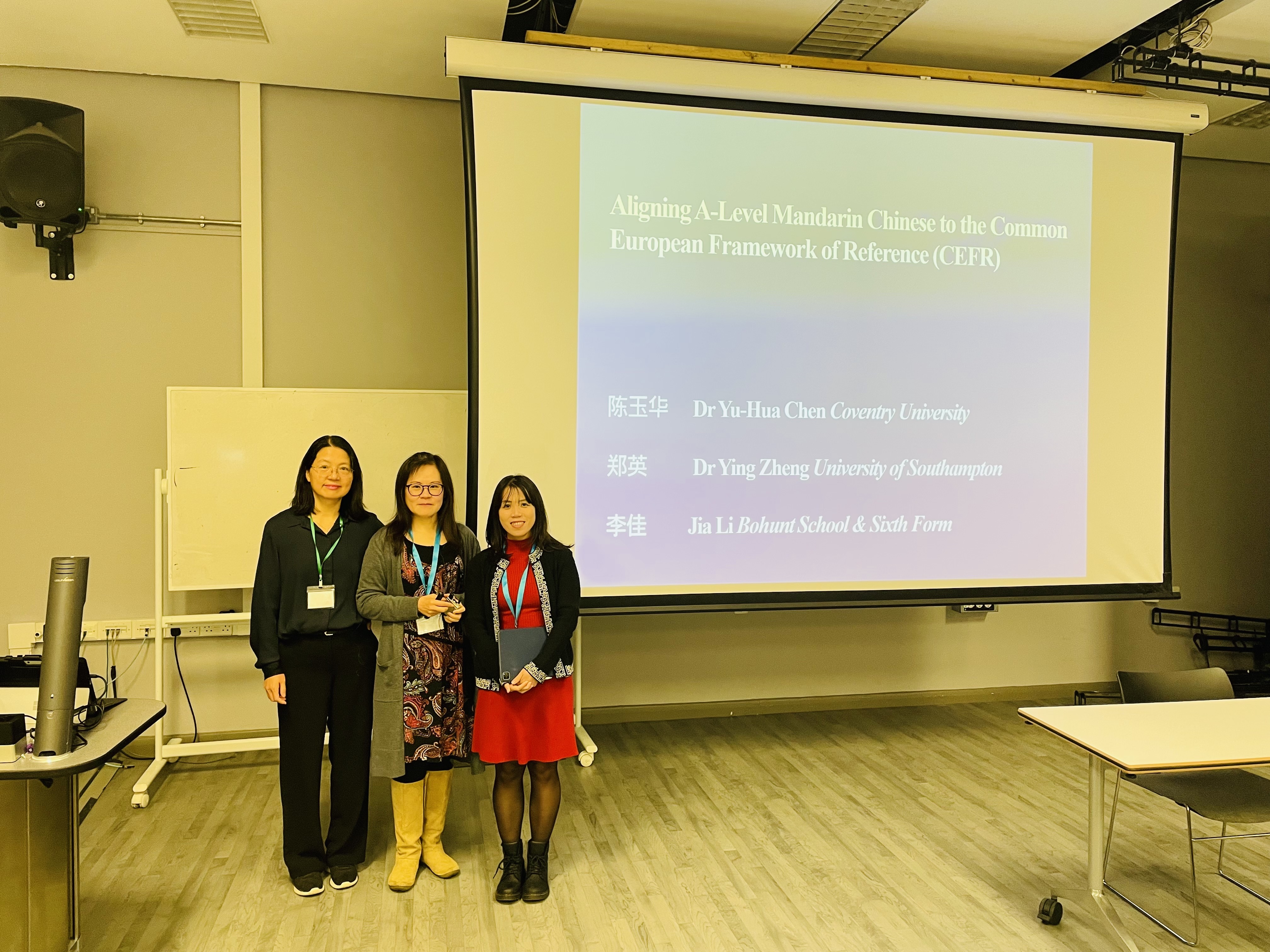 在学术研讨环节,郑英院长、考文垂大学的陈玉华博士及博航特中学利普胡克校区李佳老师聚焦英国中文科目的高考问题,做了中文A-level考试与欧框CEFR对接的研究报告,获得了会议代表们的好评,认为该研究“有助于推进英国高考中文考试改革”。