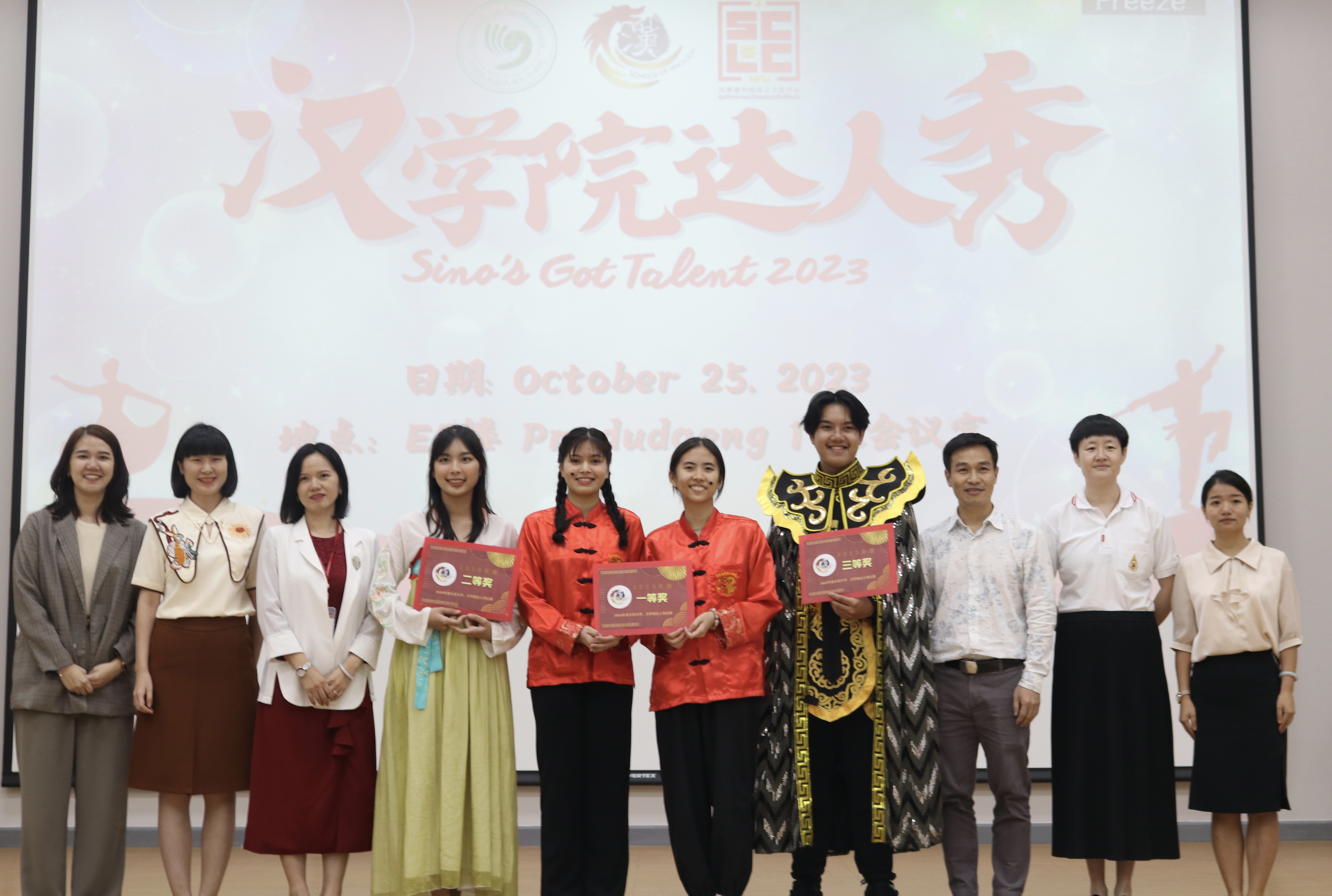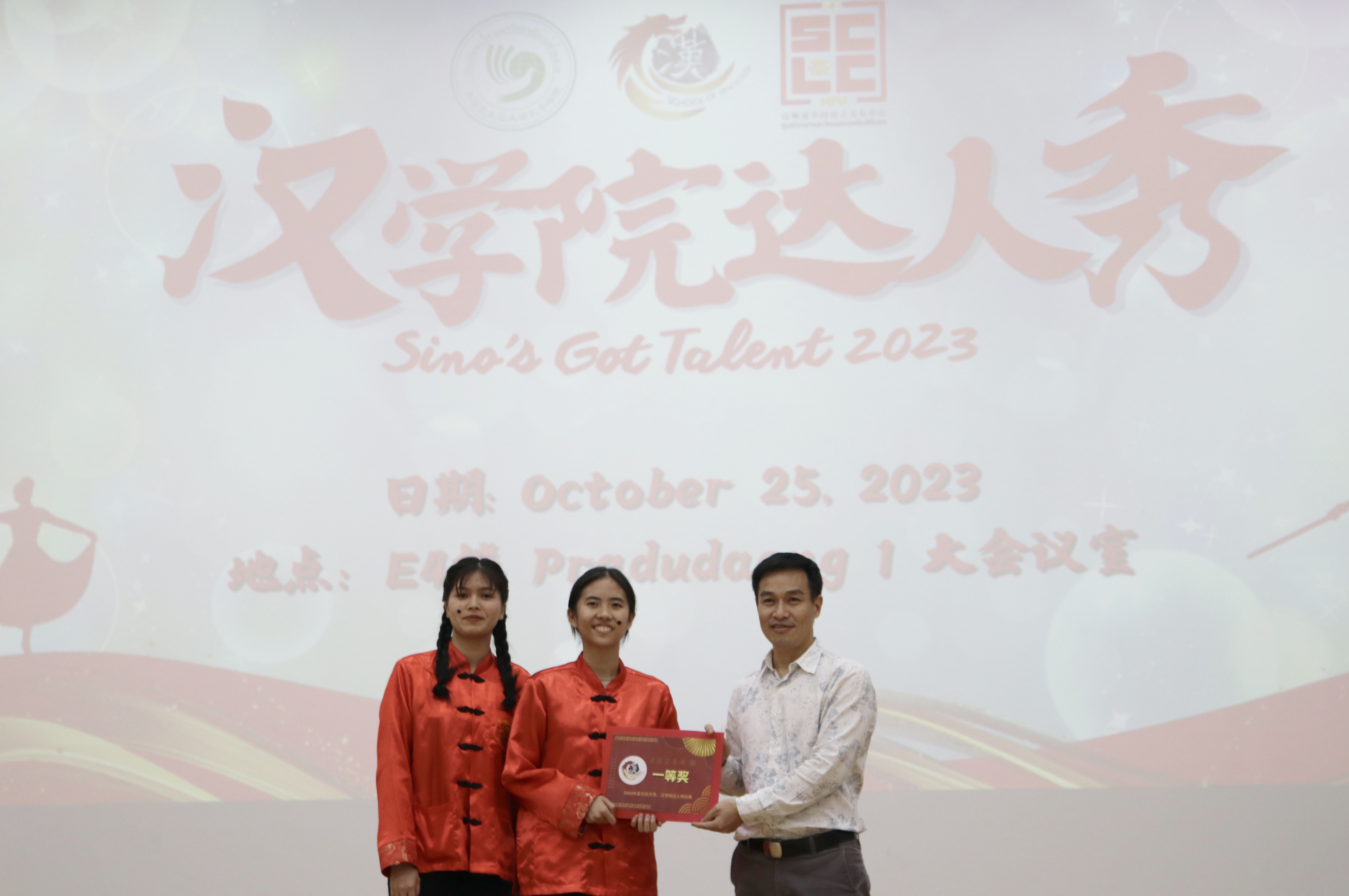 经过评委会的激烈讨论和观众们的热情投票,最终朱士兰、李思恩的相声《反义词》拔得头筹,齐彤恩的古风歌曲《赤伶》位居第二,蔡小明的川剧变脸加自弹自唱《不完美小孩》获得三等奖。陈昌旭为表现出色的选手们颁发奖项并合影留念。陈昌旭表示,这场汉语达人秀比赛在丰富学生们课余生活的同时,也是一次文化交流的盛会。它提供了一个独特的平台,让学生不仅能在教室里学习汉语,还能将汉语融入到日常生活中。