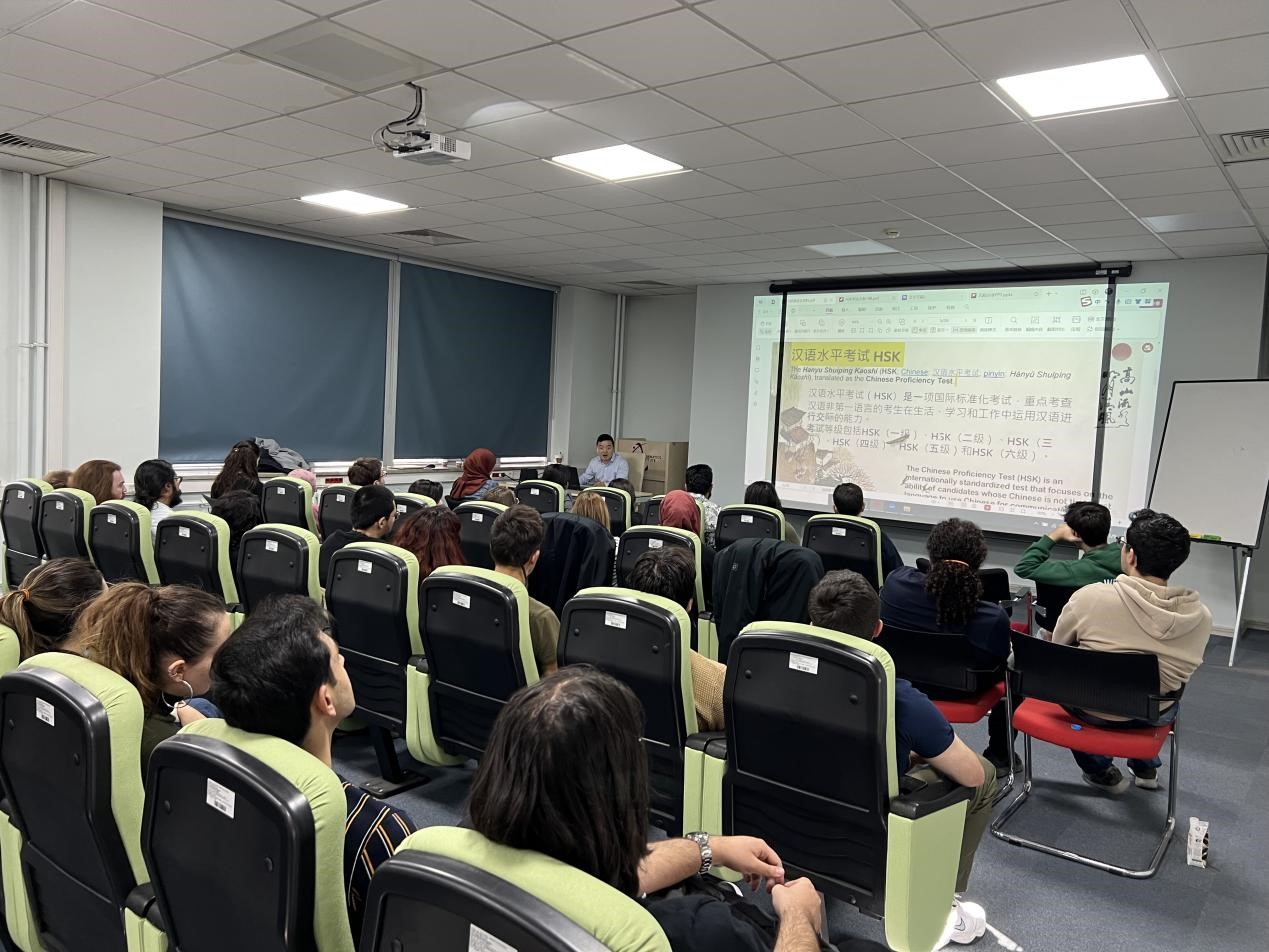 当地时间11月8日和9日,土耳其中东技术大学孔子学院举办了为期两天的“走近中国”专题系列讲座,讲座主题分别为:“一带一路”与土耳其、中国政府及孔子学院奖学金项目介绍、HSK和HSKK考试介绍、“汉语桥”暑期夏令营中国行体验分享。来自中东技术大学的近160名师生参加了此次讲座活动。学生们对当代中国国情和“一带一路”倡议的最新发展有了进一步的理解和认识;土耳其学生们更清楚地了解了HSK考试及如何申请奖学金去中国留学;参加过汉语桥暑期夏令营的土耳其学生们在中国的亲身经历更是深深吸引了在座的大学生们。每场讲座都气氛活跃,互动热烈,中东技术大学的学生们表示受益匪浅。
