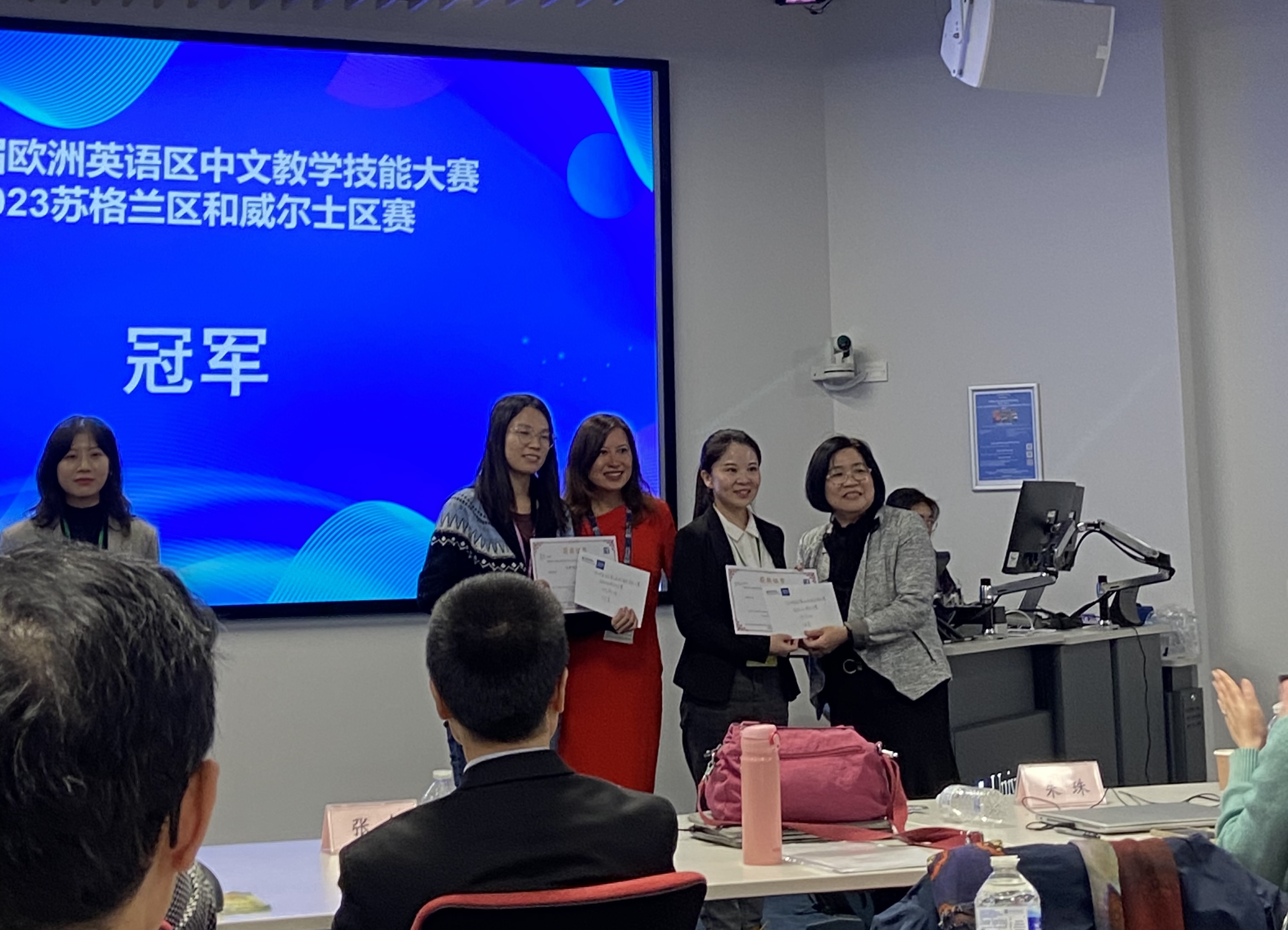 当地时间10月29日,第三届欧洲英语区中文教学技能大赛苏格兰和威尔士区决赛在格拉斯哥大学举办,此次大赛也是全英中文教学技能大赛的各赛区的首场比赛,受到各方的高度关注。经过初赛筛选,最终有9名教师进入中小学教学组决赛、5名教师进入成人教学组决赛。卡迪夫大学孔子学院公派教师杨梦姣和朱墨迪两位老师脱颖而出,参加了本次中小学组教学的决赛。最终,杨梦姣老师斩获本次大赛的中小学教学组冠军。2个组的冠亚军共4人将代表苏格兰和威尔士区参加全英中文教学的总决赛。
