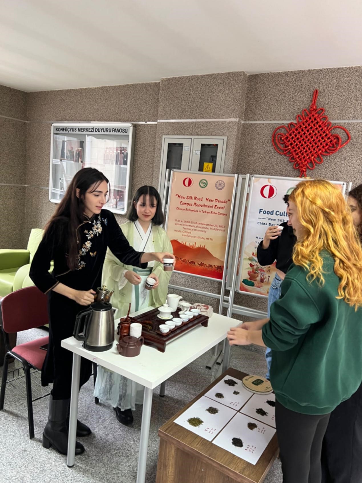 美食文化节上,同学们了解了中国茶文化,品尝了中国不同品种的茶,吃到了具有中国特色的春卷、煎饺和宫保鸡丁等中国美食。同时中土学生互相品尝每位同学带来的土耳其美食,并化身为大厨彼此之间相互介绍、鉴赏各自带来菜肴。在品尝完之后,同学们投票选出了最具人气的美食,孔院院长吴天喜和中央电视台驻土耳其记者陈慧慧女士共同为获奖同学们颁发了奖品。整个活动洋溢着轻松和欢快的气氛,大家品尝中土美食,相互交流,其乐融融。