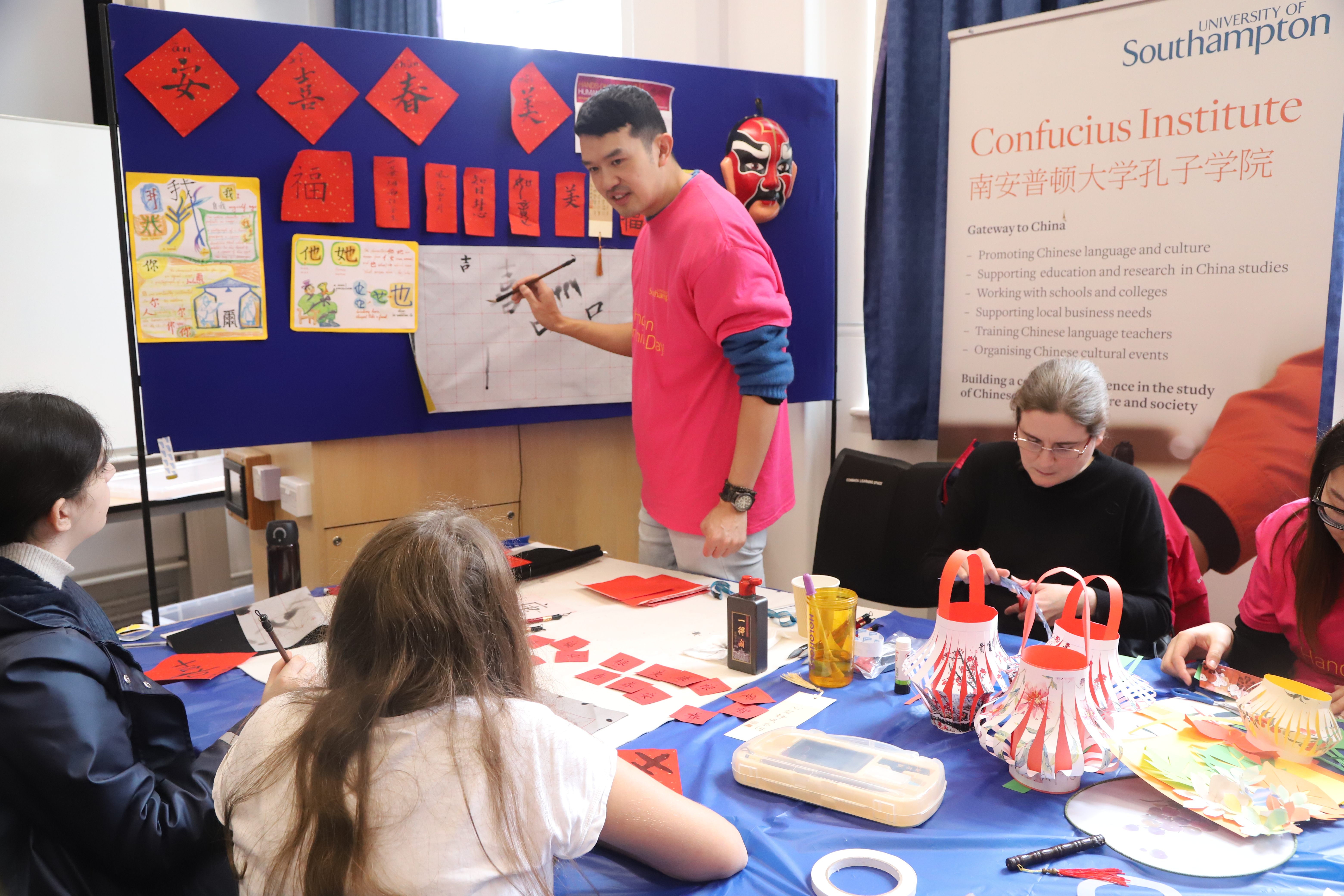 当地时间11月18日,南安孔院应邀参与组织南安普顿大学一年一度的“人文科学体验日”(Hands-on Humanities Day)文化活动。多年来,南安普顿大学利用“人文科学体验日”来帮助学校师生及周边民众了解和体验不同的文化,促进文化的互动与交流。在今年的活动中,南安孔院精心准备了书法、剪纸、手工灯笼和八段锦四个中国文化工作坊。