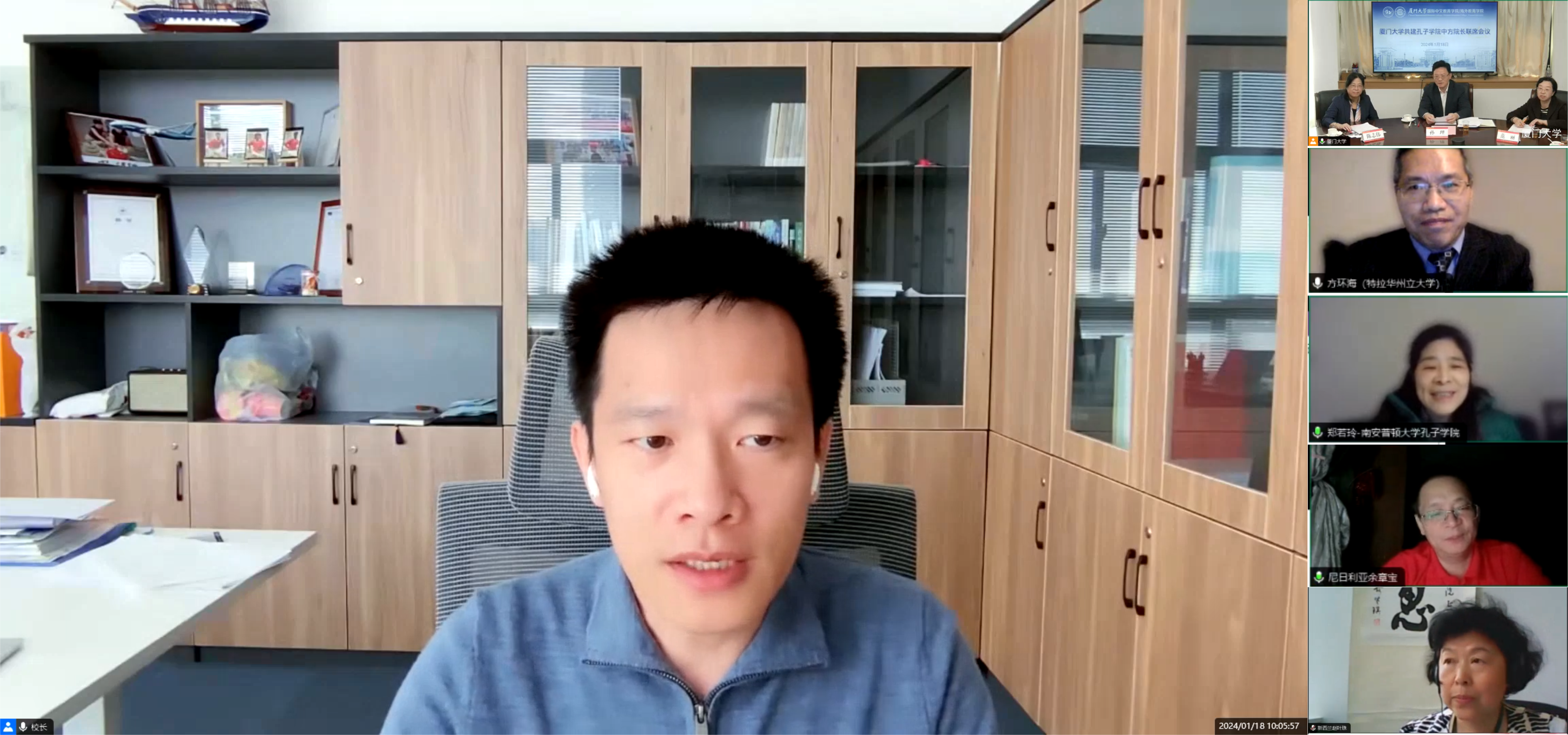 1月18日上午,厦门大学共建孔子学院中方院长联席会议在思明校区颂恩楼顺利召开。厦门大学副校长史大林线上参会并致辞,校党委常委、组织部部长、统战部部长孙理出席会议。会议由厦门大学国际中文教育学院/海外教育学院院长陈志伟主持。