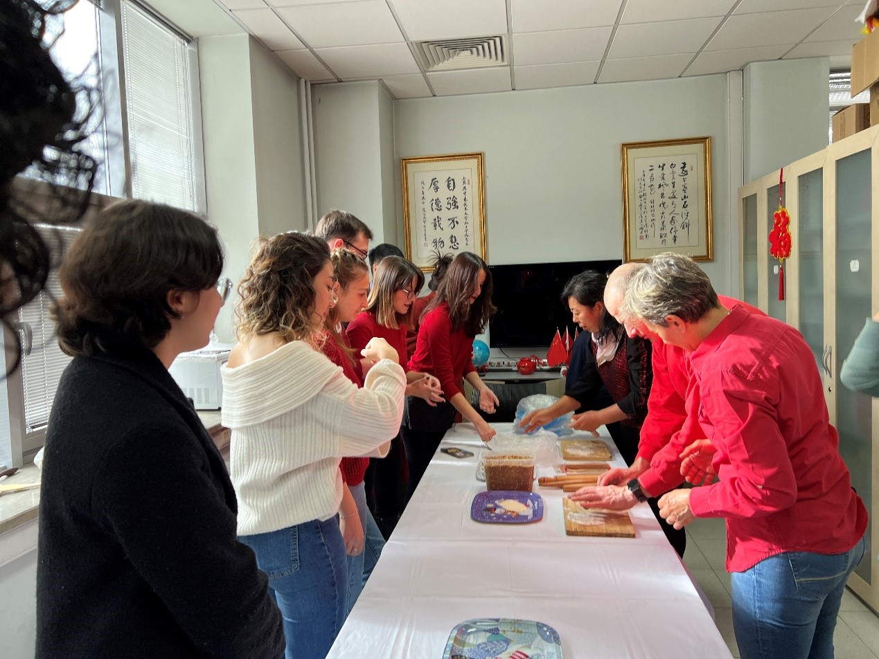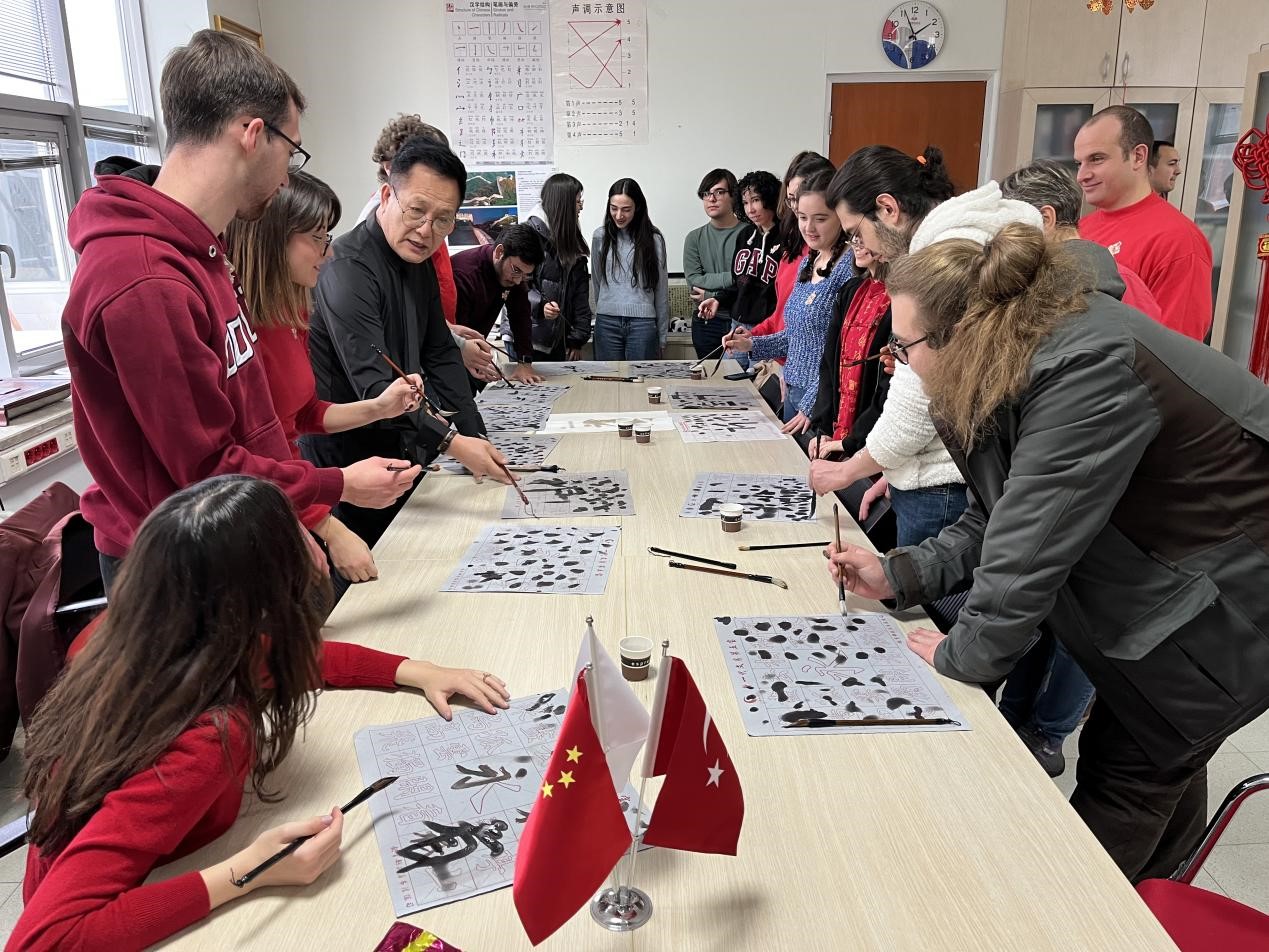 当地时间1月13日,在传统中国春节来临之际,土耳其中东技术大学孔子学院和中国驻土耳其大使馆联合举办“欢乐春节”首场活动,活动内容包括中华传统文化展示、中国书法体验、中华美食之饺子工作坊和茶艺表演体验等项目。共有来自中东技术大学2023-2024学年秋季学期中文学分选修课程、安卡拉大学和安卡拉哈兹巴伊拉姆大学中文系的80多名学生参加了本次活动。