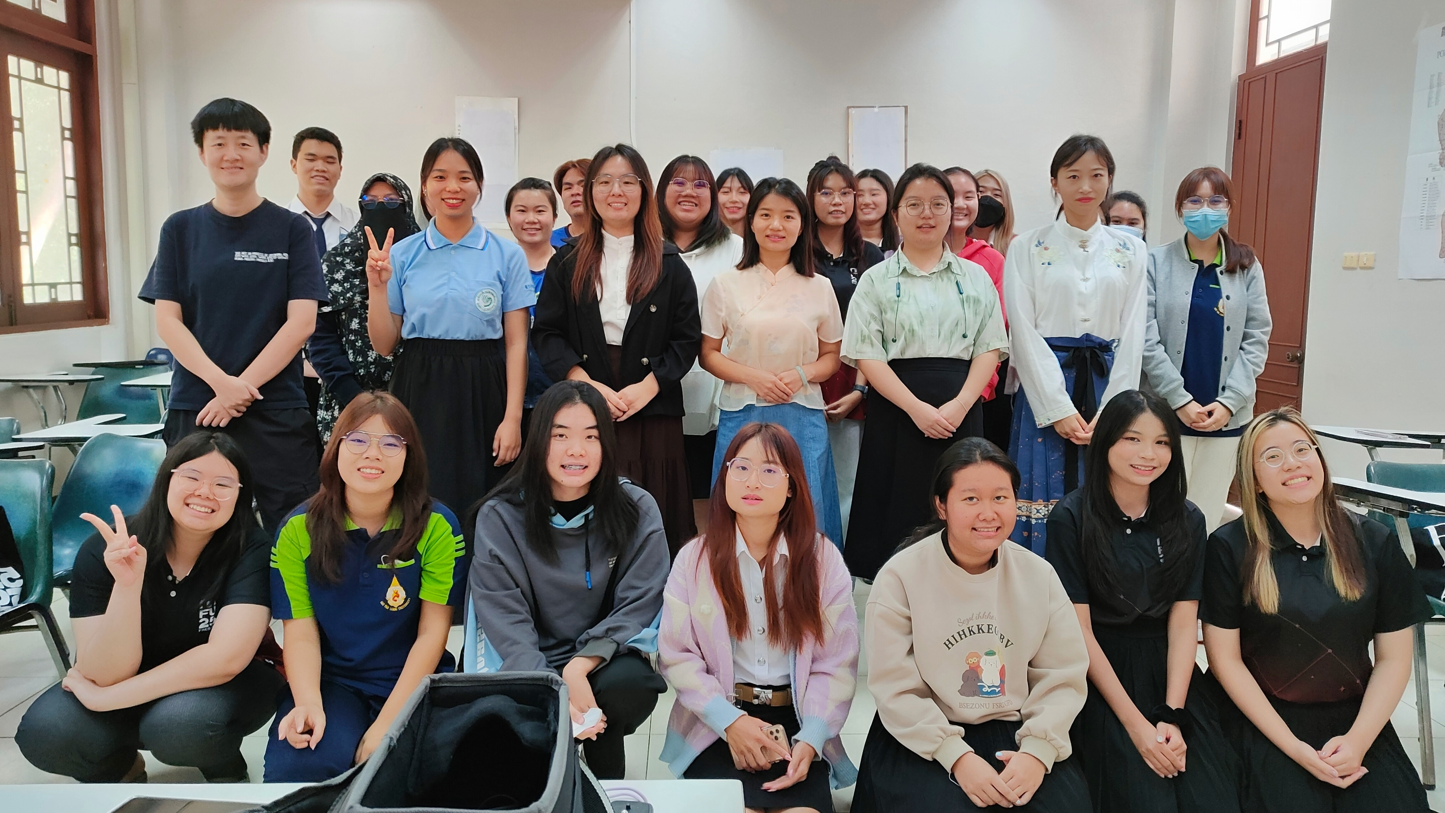 本学期孔院还承担了全校公共必修课汉语二9个班的教学工作。学生共计386位,分别来自职业健康和安全、商业管理、电子商务、软件工程、英语、多媒体技术与动画、公共健康、商业创新数字技术、应用化学、物流与供应链管理、美容科技、工商管理、计算机工程、体育与健康科学、国际发展、应用泰国传统医学、旅游管理、法学等约18个专业。