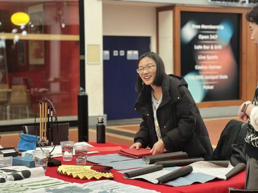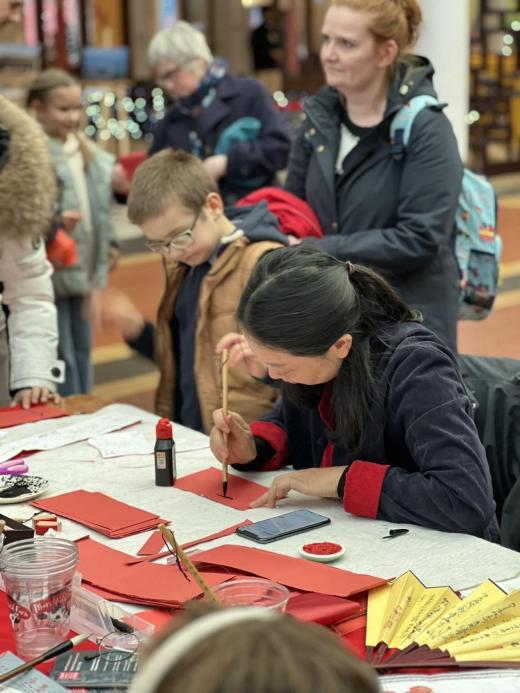 为了让市民更好地感受中国传统文化的魅力,卡迪夫孔子学院活动负责人朱墨笛与志愿者李晓乐同红龙中心负责人Emma女士于12月底便提前组织策划,当天活动现场精心布置了中国龙、红灯笼、中国结等节日元素,并设置了中国灯笼制作、筷子游戏、中国剪纸、中国书法等四个中国传统文化体验区。