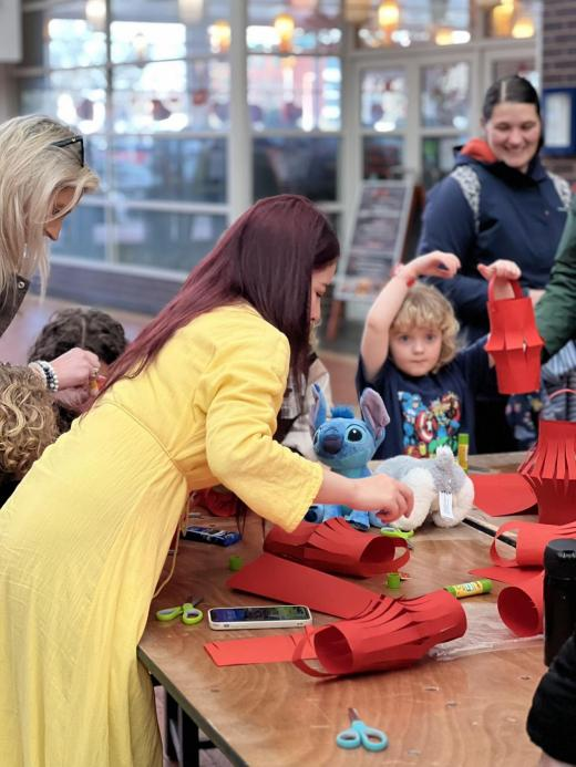 中国灯笼制作区由公派教师杨梦姣及志愿者杨春负责。活动伊始,精致的红灯笼便吸引了众多儿童参加,两位老师手把手带孩子及家长设计和制作灯笼,并在制作过程中为其讲解新年习俗和灯笼寓意。在亲自动手中,市民及孩子们沉浸式感受到中国传统年俗活动的乐趣。制作完成后,孩子们还可以将灯笼带走留作纪念。其中一位家长Eleanor表示,她们全家每年都非常期待这一活动,并对举办活动的卡迪夫孔子学院表达了诚挚的感谢与节日祝福。