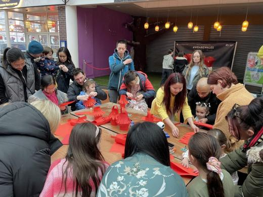 继卡迪夫中央图书馆春节庆典活动后,当地时间1月11日,卡迪夫红龙中心内人头攒动,热闹非常。红色的灯笼,跃动的“龙”形气球,悠扬的琵琶乐曲,精彩的舞狮表演,这些鲜亮迷人的中国元素让步入卡迪夫红龙中心的顾客们纷纷驻足,并加入到卡迪夫大学孔院组织的龙年春节文化活动中。