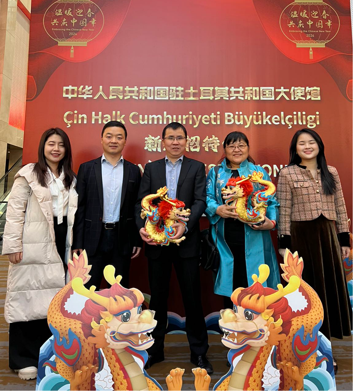 当地时间2月1日,中国驻土耳其大使馆举办2024年新春招待会,中资企业员工、在土华人华侨、在土孔子学院汉语教师、中国留学生代表等近400人欢聚一堂,同贺龙年新春。中东技术大学孔子学院中方院长吴天喜一行四人受邀参加此次招待会。