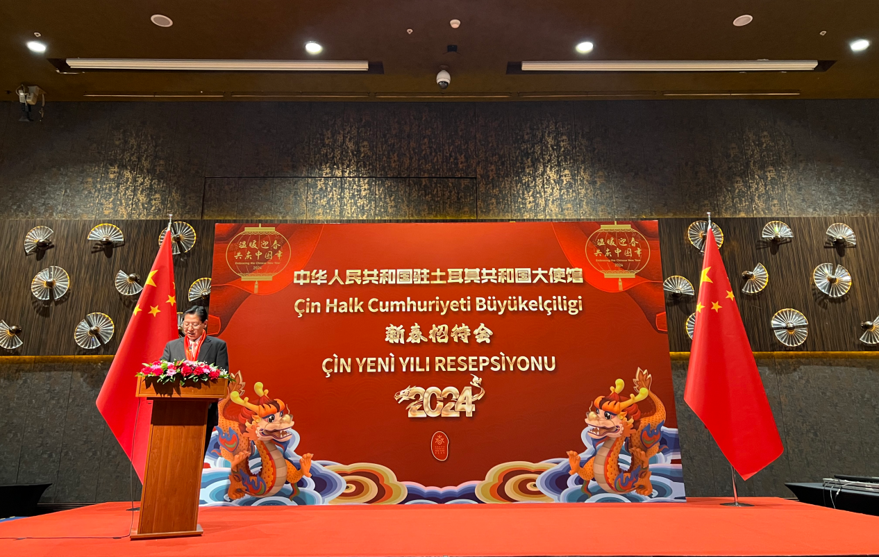 中国驻土耳其大使刘少宾在致辞中向各位来宾致以亲切的节日问候和美好的新春祝福,感谢大家一直以来大力支持中国驻土耳其大使馆的工作,积极推动中土关系行稳致远。此外,刘少宾大使表示,过去的一年,中国外交守正创新,砥砺奋进,为强国建设、民族复兴营造有利环境,为维护世界和平、共建人类命运共同体,促进共同发展作出新的贡献。