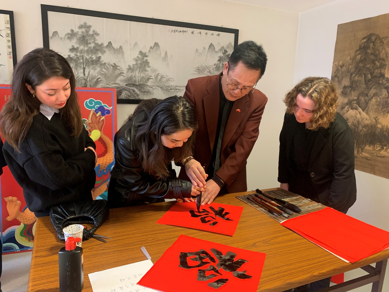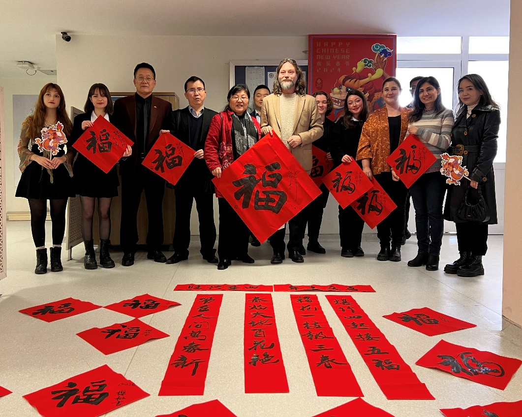 随后,中东技术大学孔子学院师生与安卡拉大学汉学系师生一起举办“欢乐春节”写春联活动,中国书法家马海山现场教授安卡拉大学汉学系学生写“福”字、写春联,学生现场动手体验贴春联这一春节民俗。该活动受到学生们的热烈欢迎。