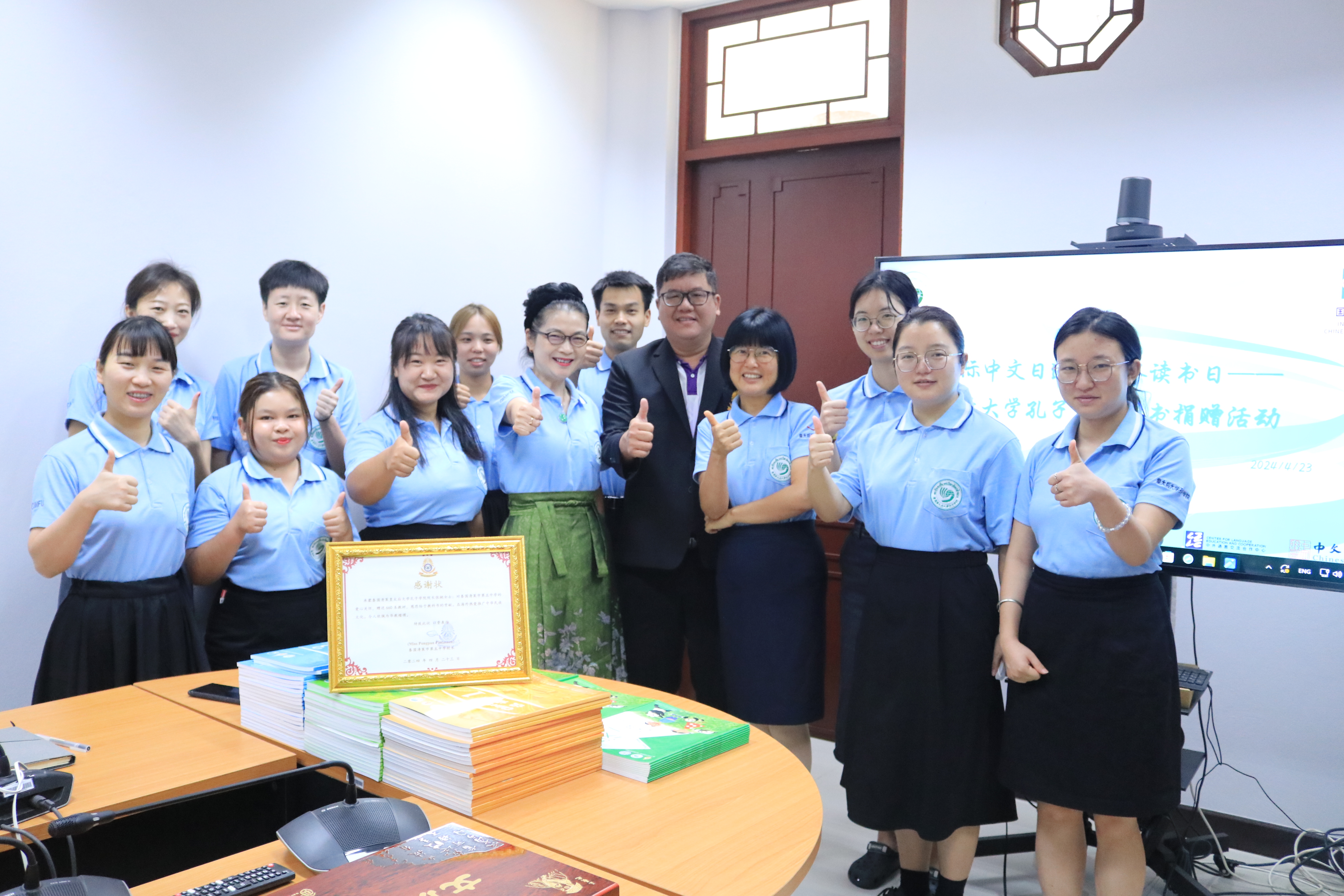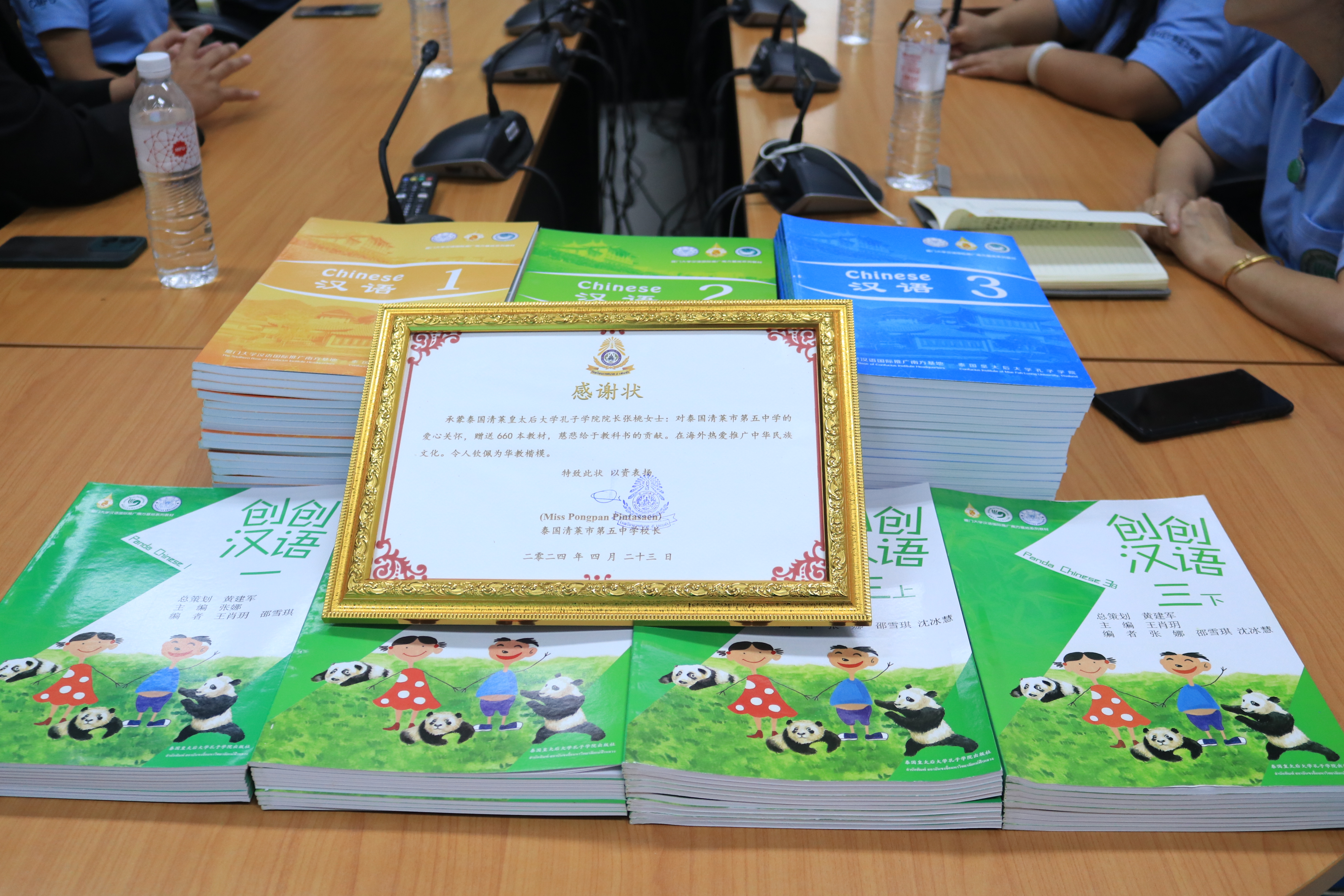 这次孔院又在得知五中教材不足的情况下,第一时间为五中学生们捐赠一大批孔院自编教材,解了燃眉之急,他代表清莱五中表示深切的谢意。