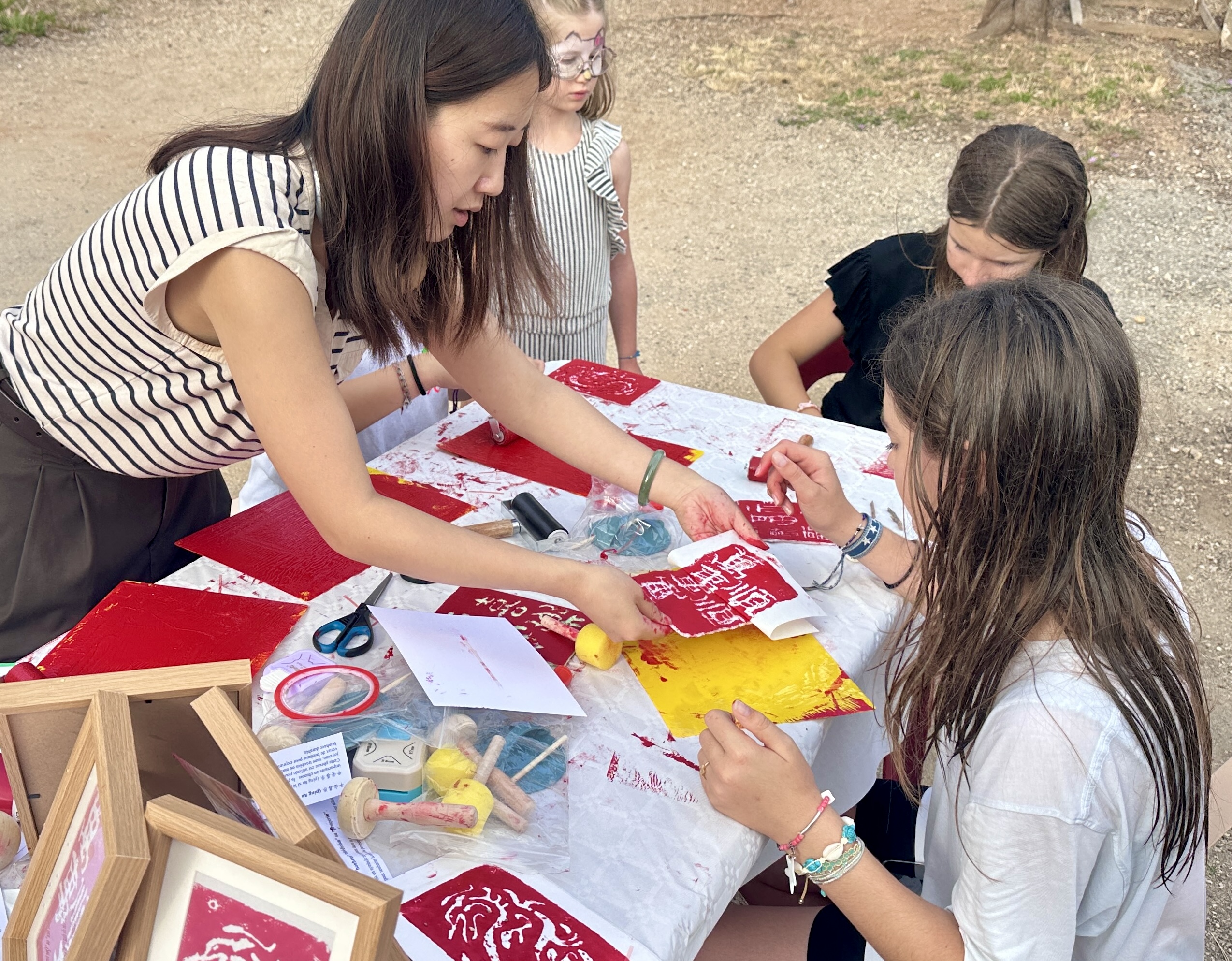 拓印活动则为孩子们提供了一种独特的动手体验。在老师的指导下,孩子们亲自动手制作属于自己的拓印作品。孔院准备了多种拓印图案以及汉字的翻译,让每个孩子在根据自己的喜好进行创作的同时,更好地了解中文的奥妙。孩子们的拓印成品不仅展示了他们的动手能力,也让他们在制作过程中深刻感受到了中国古老智慧的魅力。