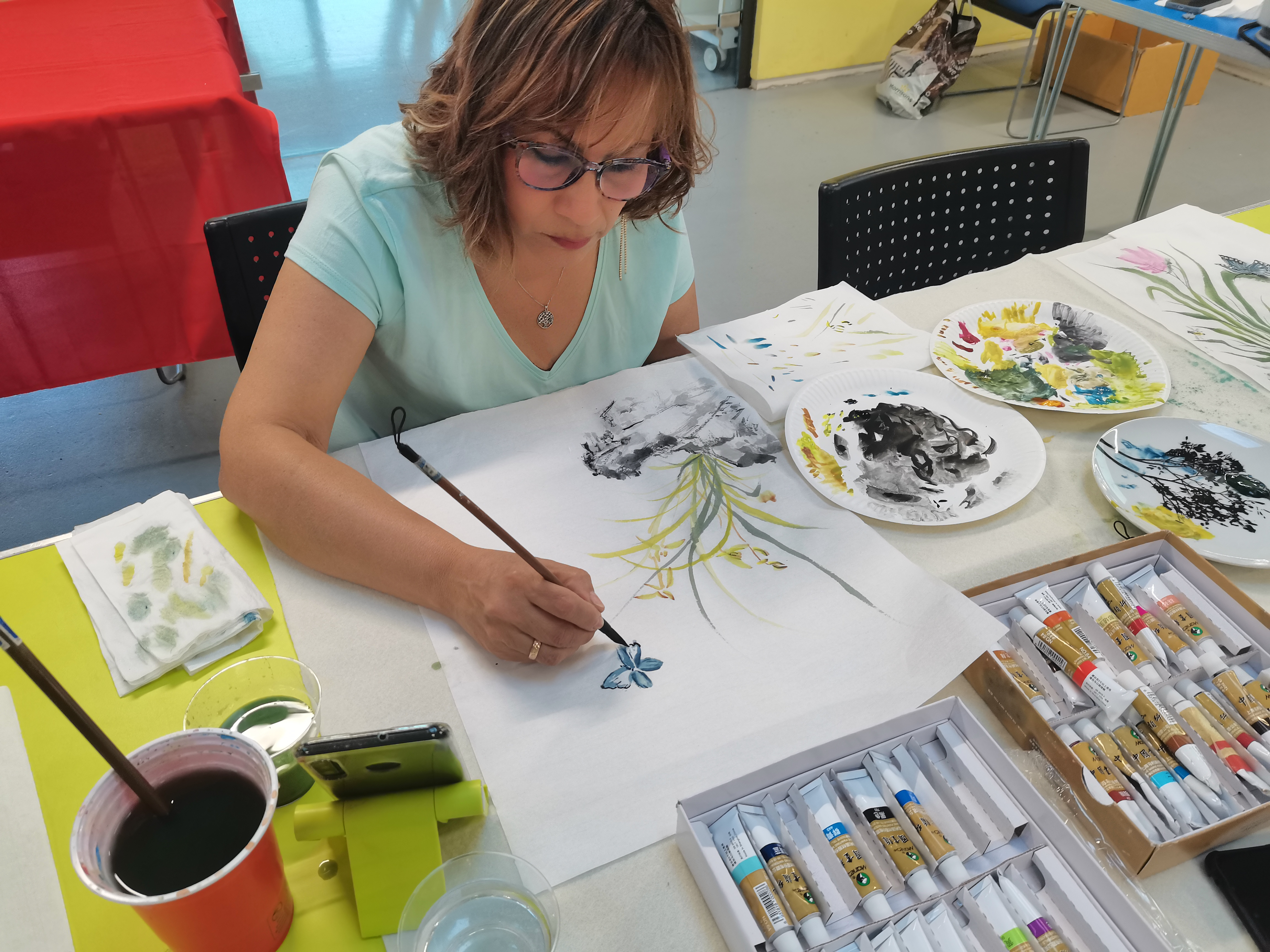 持续近一个月的国画课圆满结束。学员们对诗、书、画相结合的国画艺术形式非常喜爱且着迷。多名学员还专门从网上购买了国画教材、国画教程和国画材料,准备在课后继续探索学习中国画。