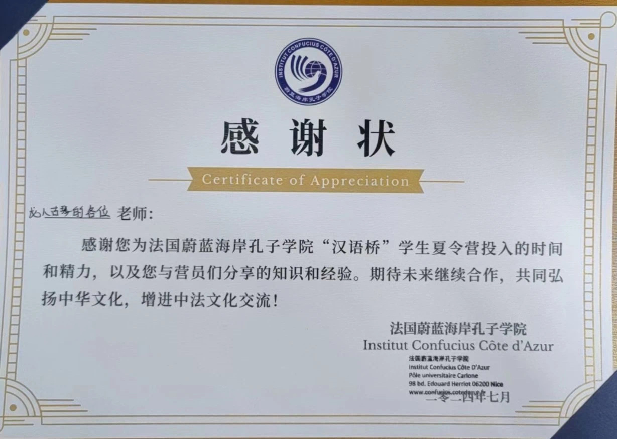 蔚蓝海岸孔子学院为确保此次夏令营活动的顺利进行做了充分的准备,包括举办行前说明会、组织学生购买机票、准备必要的文书和未成年出境许可,并向当地相关部门报备未成年人出行。此外,孔院还为夏令营的授课教师、合作机构和导游准备了感谢状和小礼物,以表达对他们的敬意和感谢。