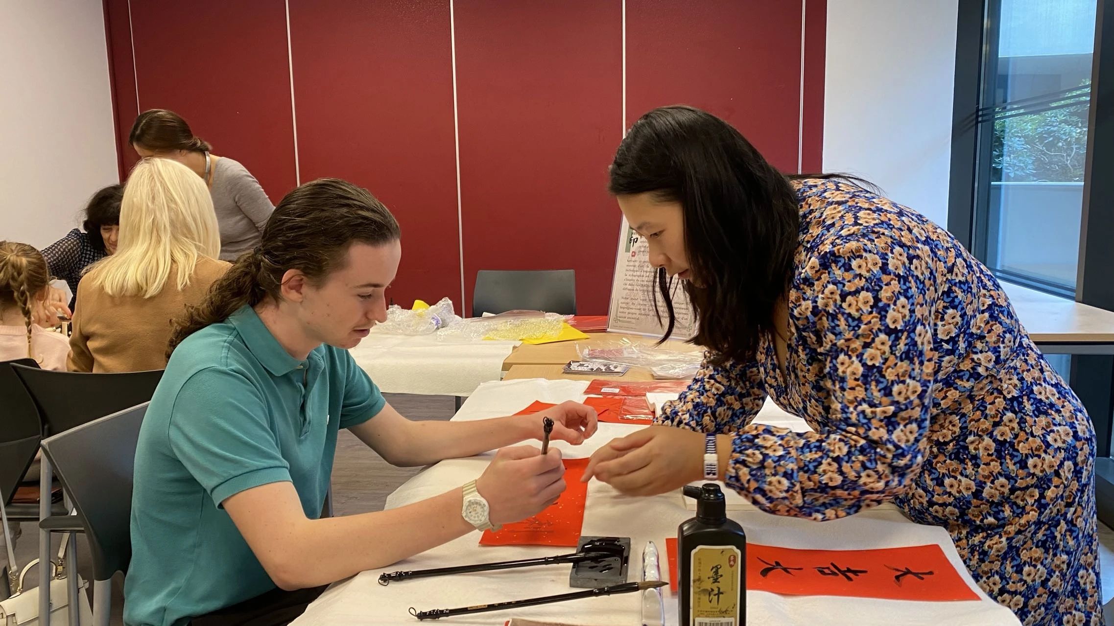 在下午16时至17时30分,孔院为参与者带来了两场精彩的文化体验工作坊。首先是中国书法工作坊,让摩纳哥民众亲身体验中国汉字的书写艺术。参与者们在专业老师的指导下,挥毫泼墨,感受汉字的优雅与力量。紧接着的拓印艺术工作坊则向大家展示了这一独特的中国传统工艺。通过亲手制作拓片,参与者深入了解了中国文化的精妙之处。