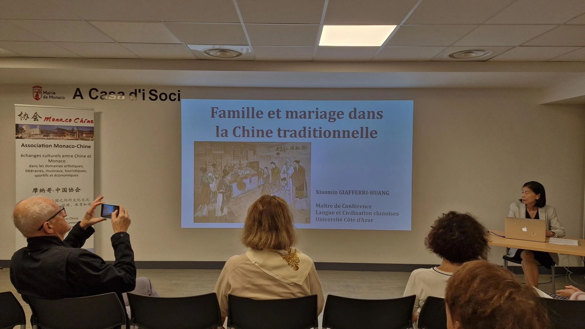 晚上18时,活动进入高潮。著名汉学家、原蔚蓝海岸大学中文系主任黄晓敏(Xiaomin GIAFFERRI)为大家带来了题为"中国传统社会中的家庭与婚姻"的精彩讲座。黄晓敏以其深厚的学术功底和生动的语言,为听众揭示了中国传统社会中家庭的核心地位,及其在社会结构中的重要作用。讲座后的鸡尾酒会上,听众们与黄晓敏进行了热烈的交流,进一步加深了对中国文化的理解。