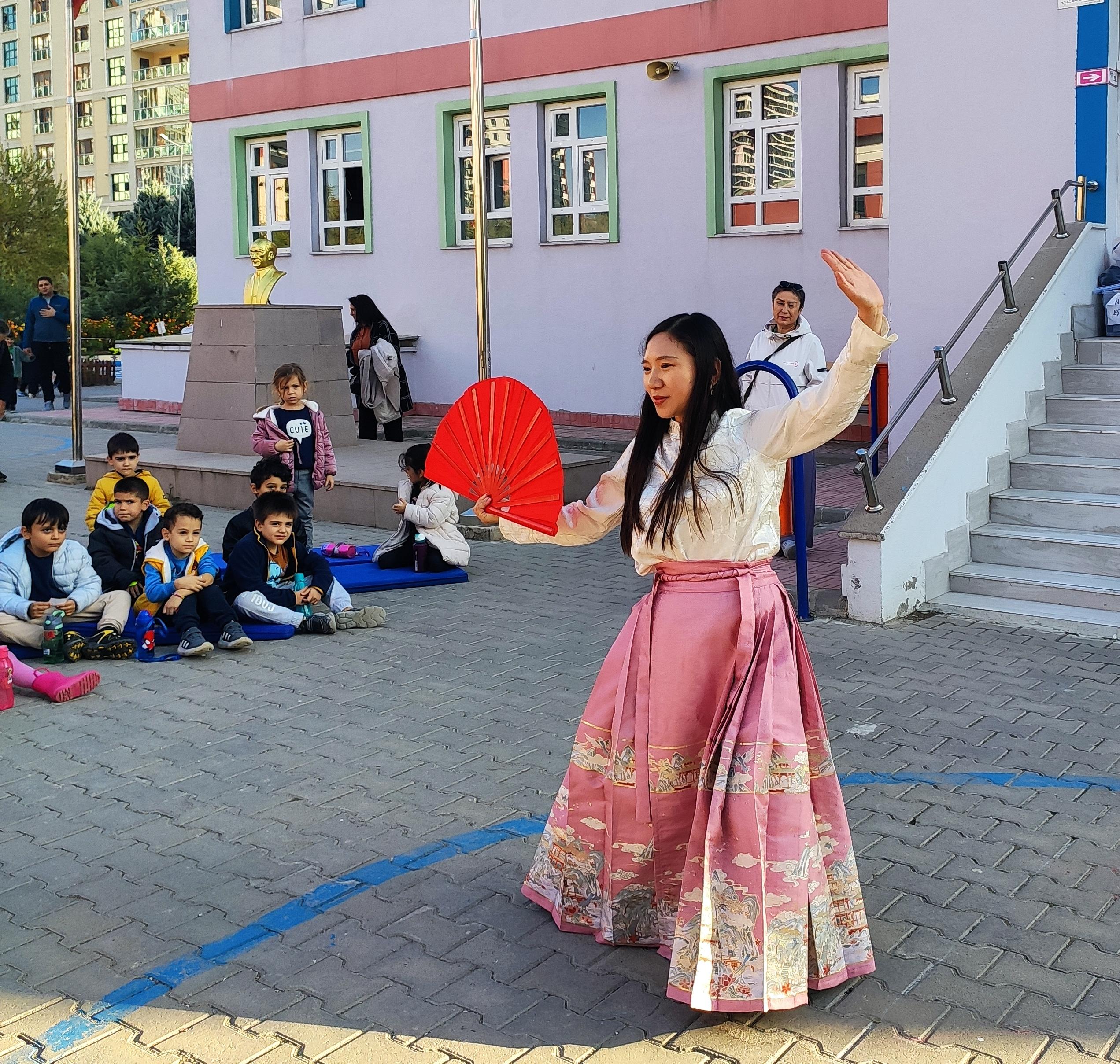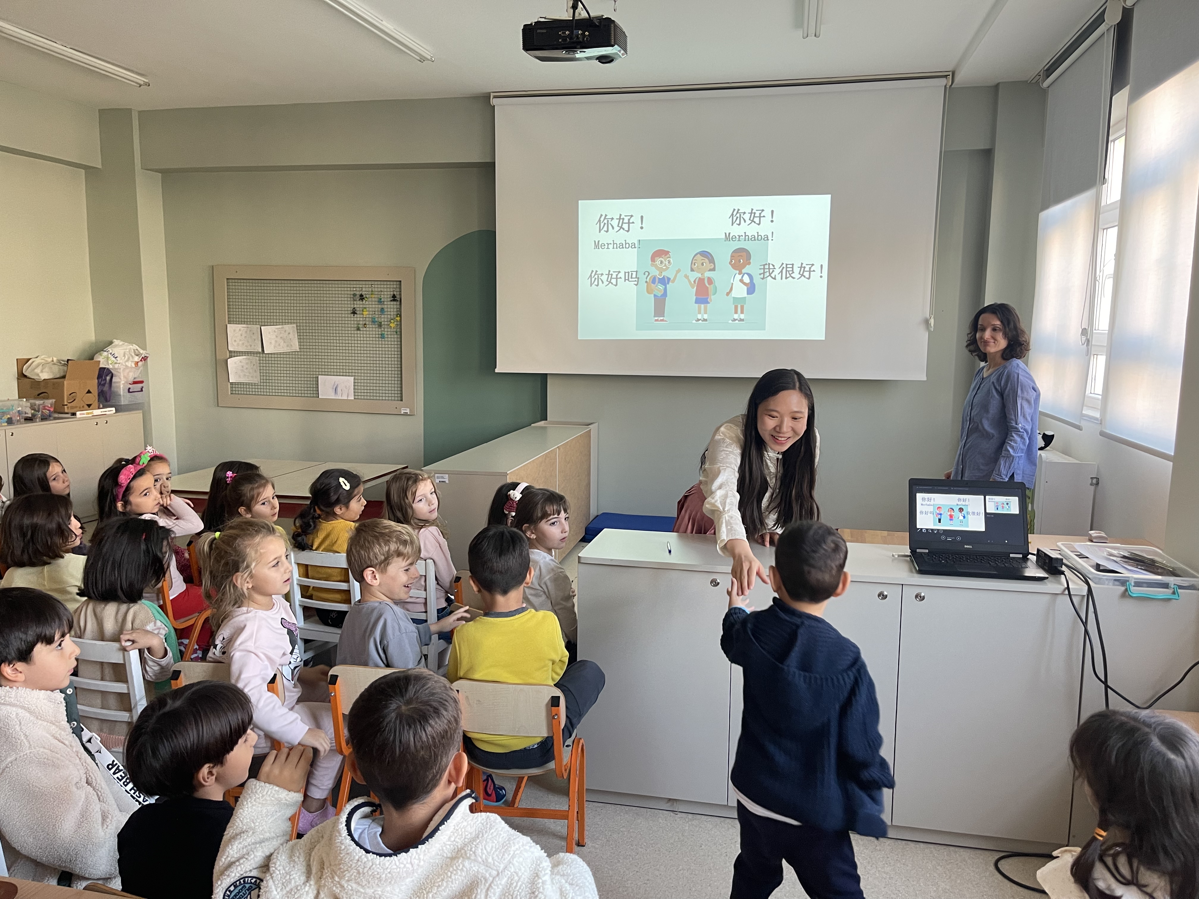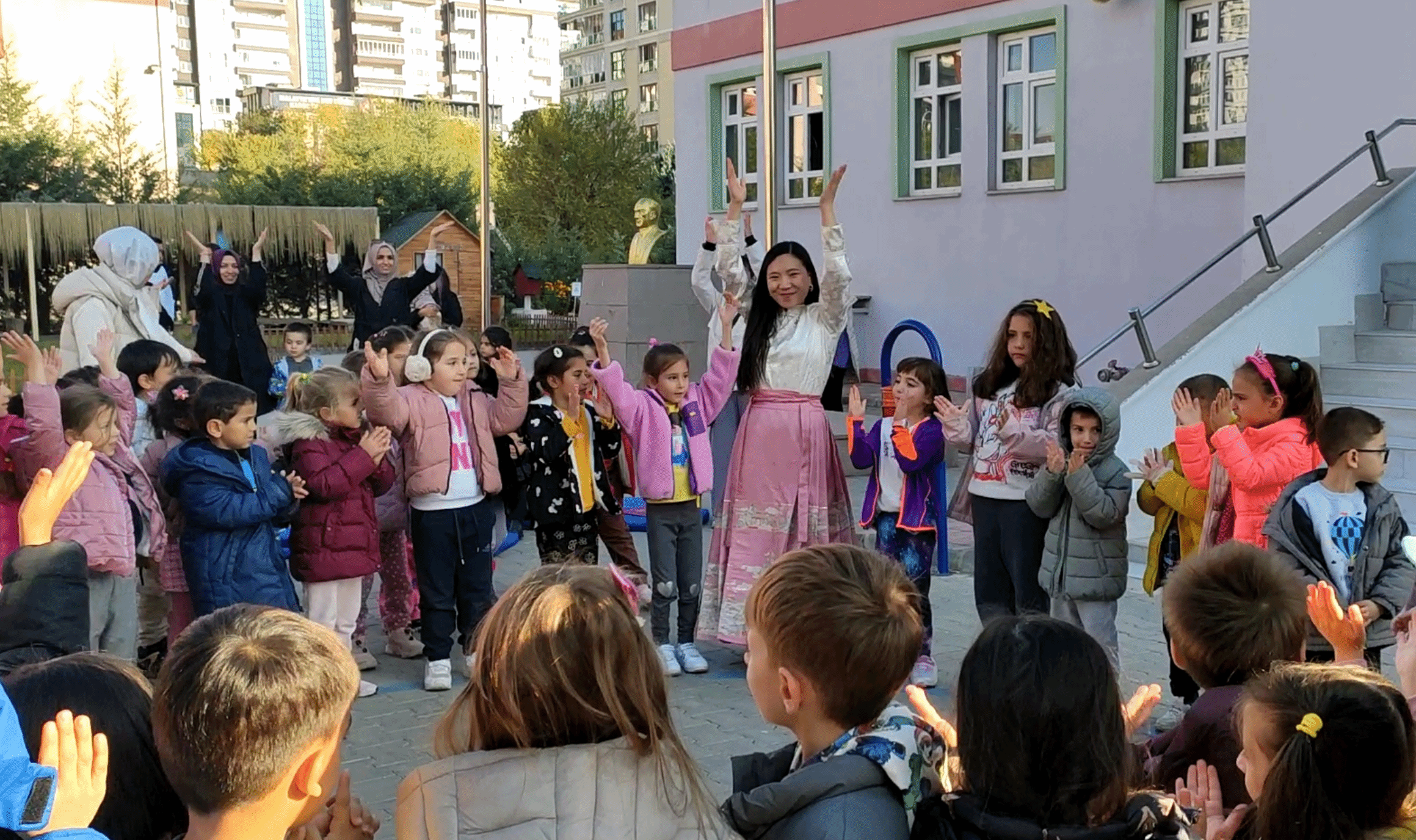 当地时间10月23日下午,为进一步推动中土文化交流,提升安卡拉公立幼儿园小朋友们对多元文化的认知,土耳其中东技术大学孔子学院公派教师王康静和中国留学生志愿者宋峥杨赴安卡拉Anaokulu公立幼儿园举行了中国文化开放日活动。此次活动吸引了全体幼儿园小朋友、教师及校领导的参与。土耳其语及外语语言教育研发中心教育委员会教育专家雅赛敏女士(Yasemin Çimen )出席了本次活动。