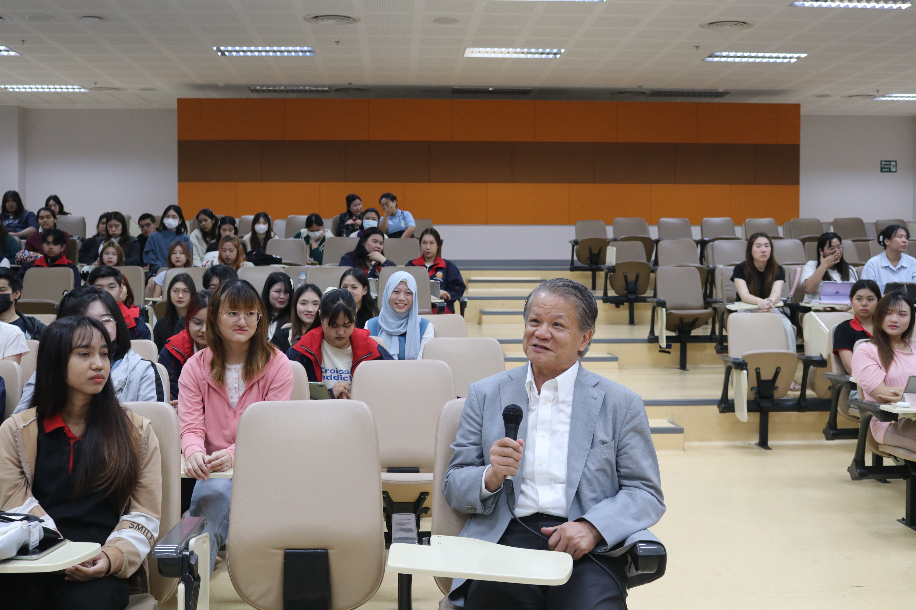 在黄建军和陈昌旭的陪同下,纪乃元还与汉学院的学生们进行了座谈和交流。他提到,捐赠的400万奖学金中有150万将用于支持泰北地区的学生,让他们有机会到中国深入学习汉语、了解中国社会。此外,纪乃元还表示愿意为泰北的学生提供实习的机会。他介绍,自己主要从事高层建筑钢结构制作业务,公司在泰国、日本、中国等地均有分布。他鼓励学生们好好学习,争取到中国留学,未来将有更广阔的就业前景。座谈会上,学生们与纪乃元进行了热烈交流,纷纷表示对未来的道路充满了信心。