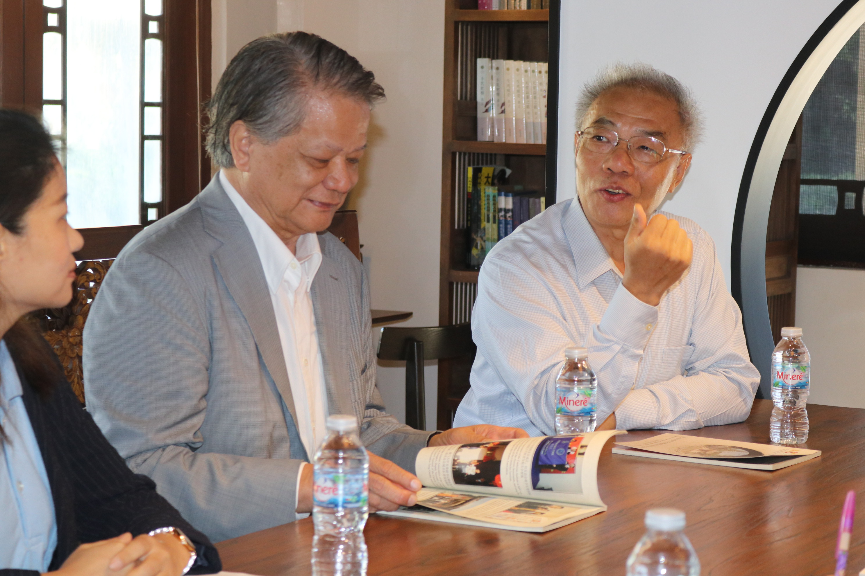 随后,双方在乡愁书院举行了座谈,黄建军首先向与会者介绍了纪乃元的事迹。他出生在台湾,先后在美国、日本就读,取得美国科罗拉多州立大学、日本京都大学的硕士、博士学位。之后,他选择到泰国创业,凭借卓越的商业头脑和不懈的努力,成功创立了泰国知名的上市公司,并担任总裁。尽管年过七旬且工作繁忙,纪乃元仍对中国文化怀有浓厚的兴趣,并前往厦门大学深造。在厦大校史馆,他听到厦大创校历史和陈嘉庚先生的事迹后,热泪盈眶,深受感动。出于对陈嘉庚先生高尚品德的景仰,纪乃元代表公司向厦门大学捐赠了400万元人民币,设立乃元教育发展基金,以助力学校发展建设、培养国际人才。