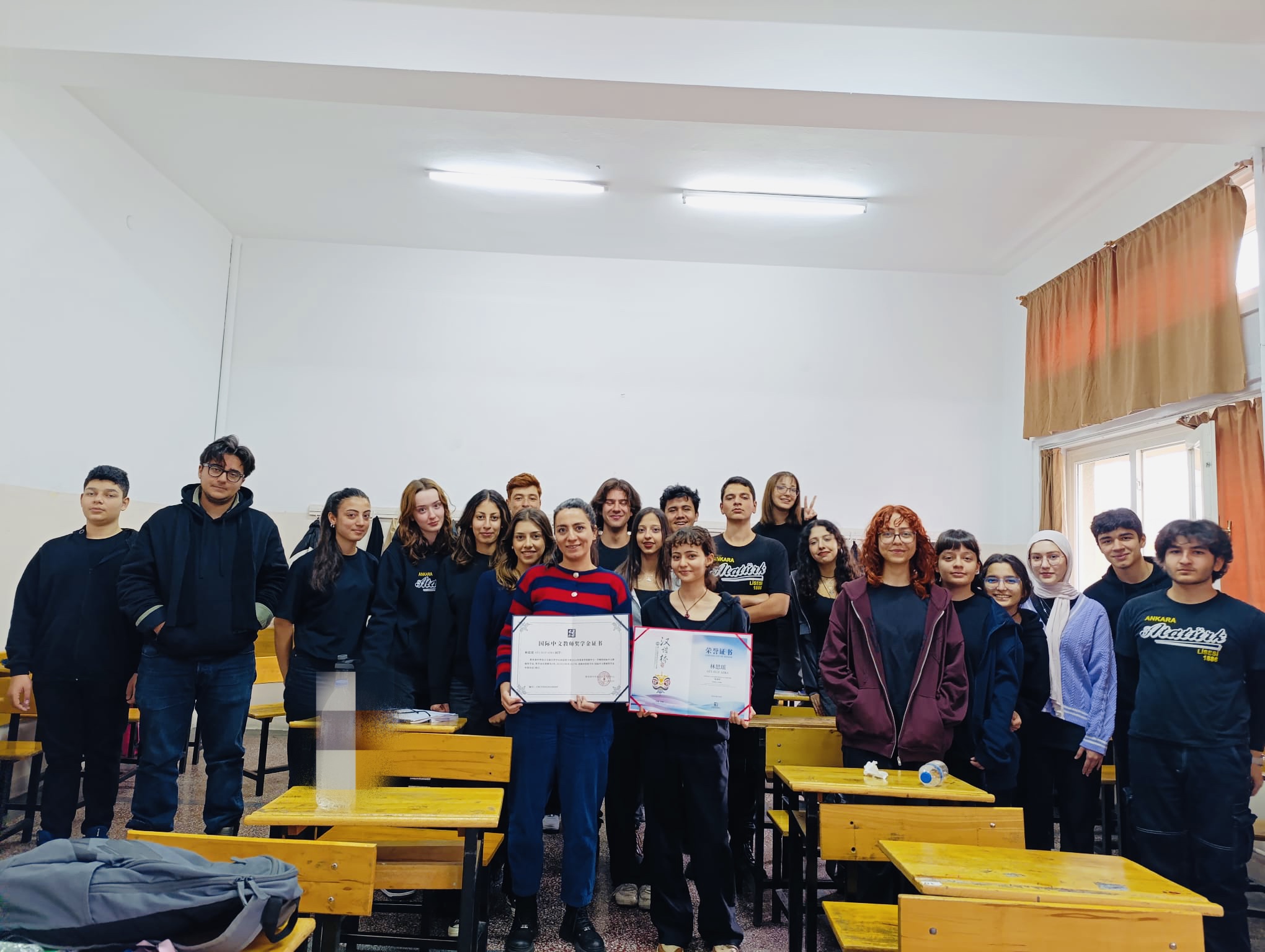 10月14日至 29日,第十七届“汉语桥”世界中学生中文比赛在北京和天津举行,为来自102个国家的181名中学生提供了一个展示中文能力、促进文化交流的平台。土耳其中东技术大学孔子学院下属教学点阿塔图尔克高中的十一年级学生Elif Azra Gül,由于在此前土耳其赛区比赛中荣获第一名,此次作为土耳其选手代表前往中国参加全球总决赛。