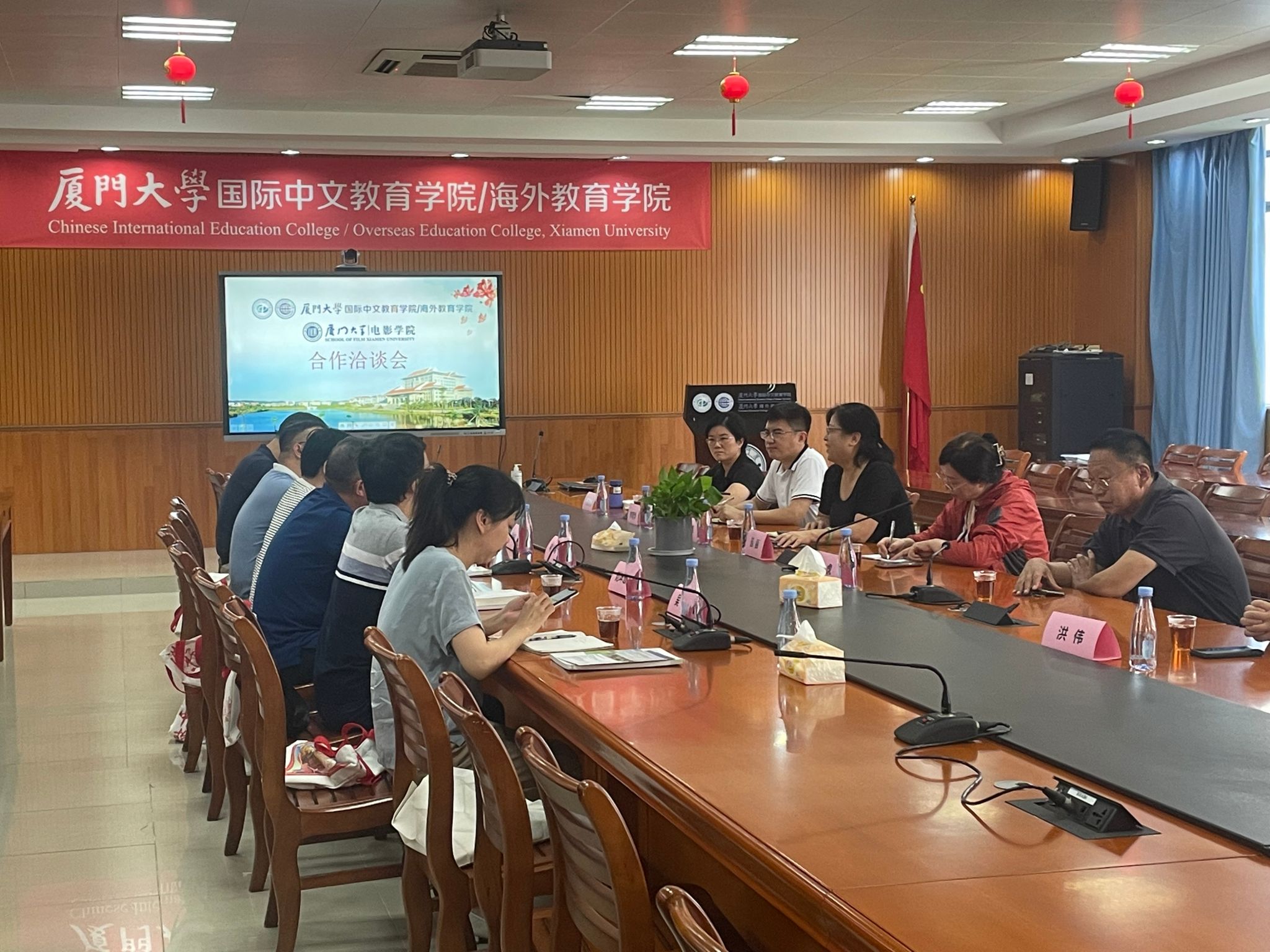 9月5日上午,厦门大学电影学院党委书记林公明、副院长李晓红、党委副书记张晴一行赴翔安校区,与国际中文教育学院/海外教育学院党委书记范丽、院长陈志伟、副院长耿虎、党委副书记林明华就院际合作事宜进行洽谈。双方就具体合作领域、模式和近期重点工作展开交流,为今后两院更深入合作奠定了坚实基础、开启了新局面。