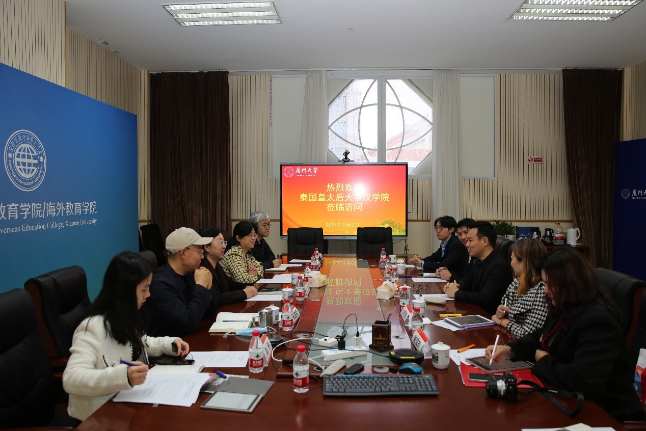 3月6日,泰国皇太后大学汉学院院长陈昌旭及4位课程负责人到厦门大学国际中文教育学院/海外教育学院进行访问。厦门大学国际中文教育学院/海外教育学院院务委员会主席范丽、院长陈志伟等会见来宾并就双方合作事宜进行了交流。