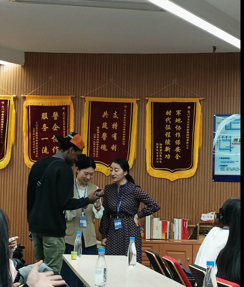 随后,厦门市外国人才服务站代表刘秉佳带领师生来到会议室开展座谈。刘秉佳详细介绍了厦门市的海外人才政策,多方位展示了厦门的城市魅力和独特优势,并从生活补贴、医疗保障、人才安居和配偶安置等方面列举了国际人才留厦的生活保障。在会后互动交流环节,就同学们提出的关于实习机会和招聘情况的问题,刘秉佳一一做了详细的解答,并表示对于有意愿留厦工作的国际学生,人才服务站将会仔细筛选,帮助同学们将简历转给最合适的企业。