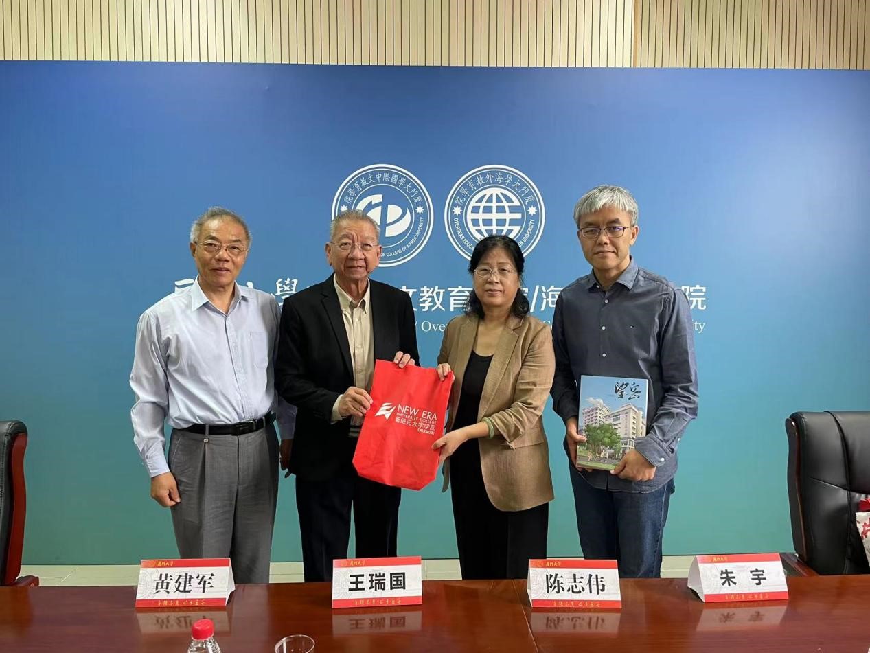 4月24日上午,马来西亚新纪元大学学院华文教育研究院院长、我院院友王瑞国博士来访我院。院长陈志伟、学院招生负责人黄建军、华文系系主任朱宇等参与会谈。