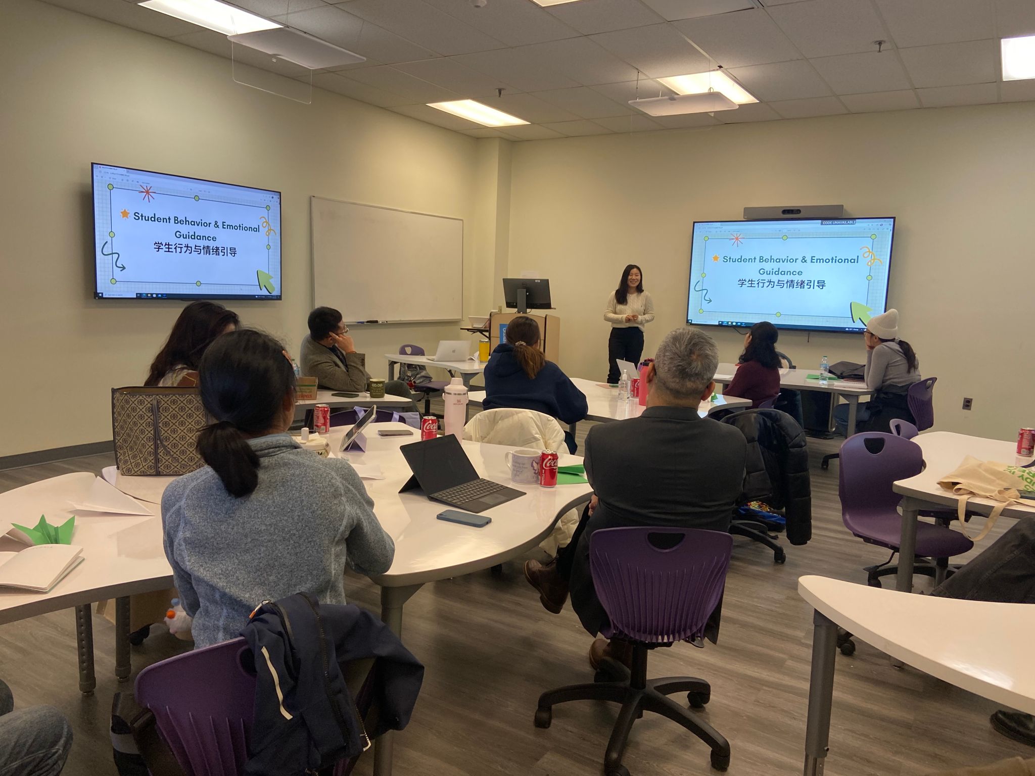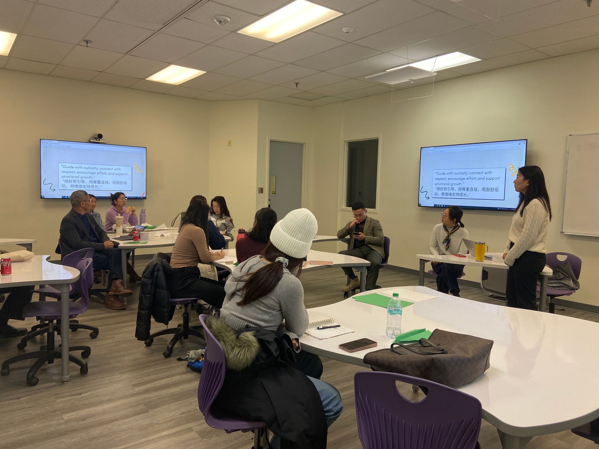 当地时间12月6日,美国特拉华州立大学中国语言文化研究中心(以下简称“中心”)教师专业发展培训工作坊在特拉华州立大学主校区成功举办。本次工作坊特邀美国特拉华州Old State Elementary School两位资深一线中文教育教师嵇凌、陈叶丽主讲,中心主任张翼副教授主持本次工作坊,中心全体教师均到场参加本次培训。