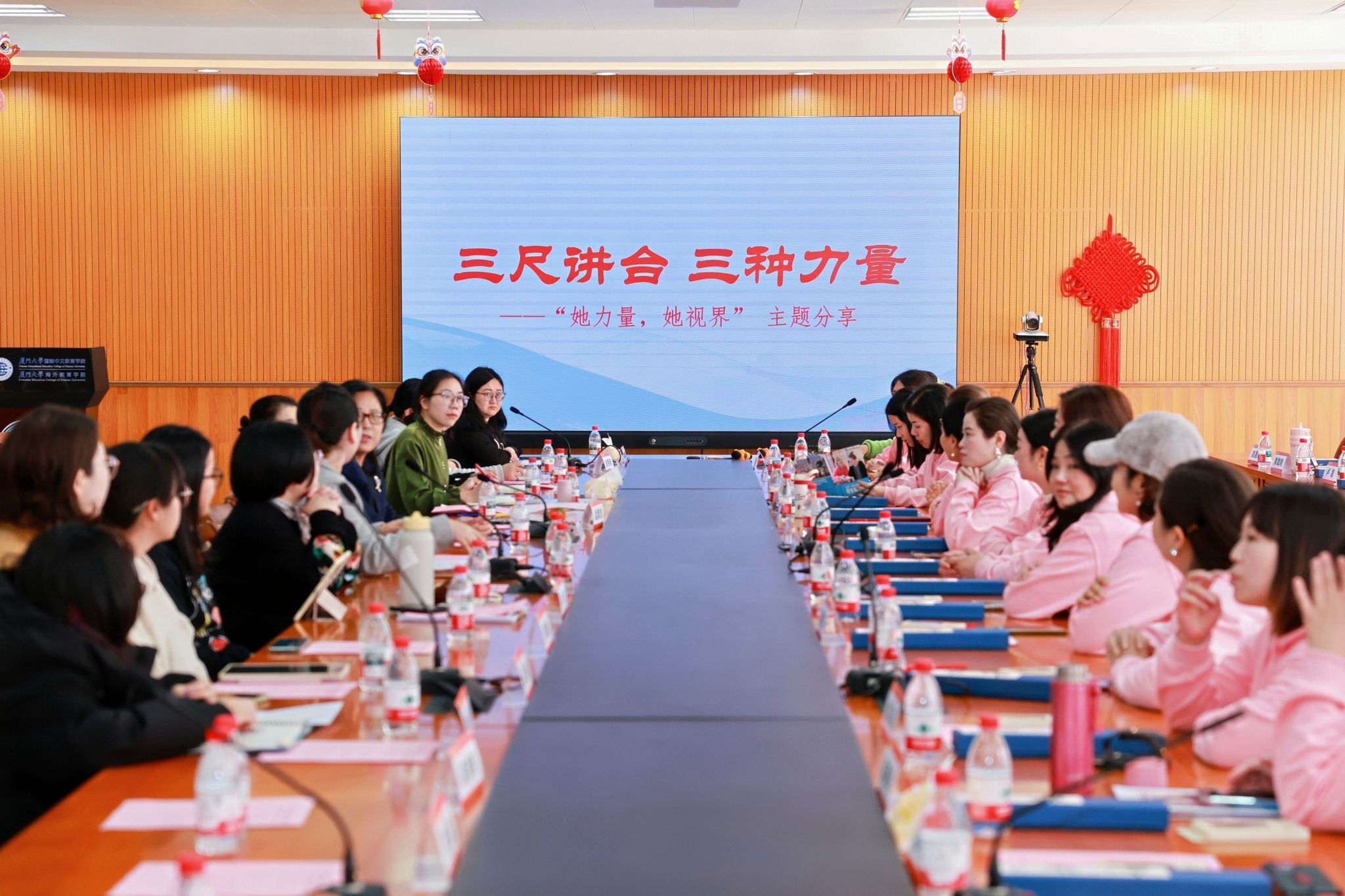 3月11日,福建闽商巾帼志专委会访问团一行到访厦门大学国际中文教育学院/海外教育学院,与学院师生开展“她力量,她视界”三八节主题座谈,并进行文化交流校园参观活动。学院院长陈志伟、华文系副主任孟繁杰教授、港澳台先修部主任林幼芳、语合中心女教师及国际学生代表共同出席活动。座谈会由学院教师陈文倩主持。