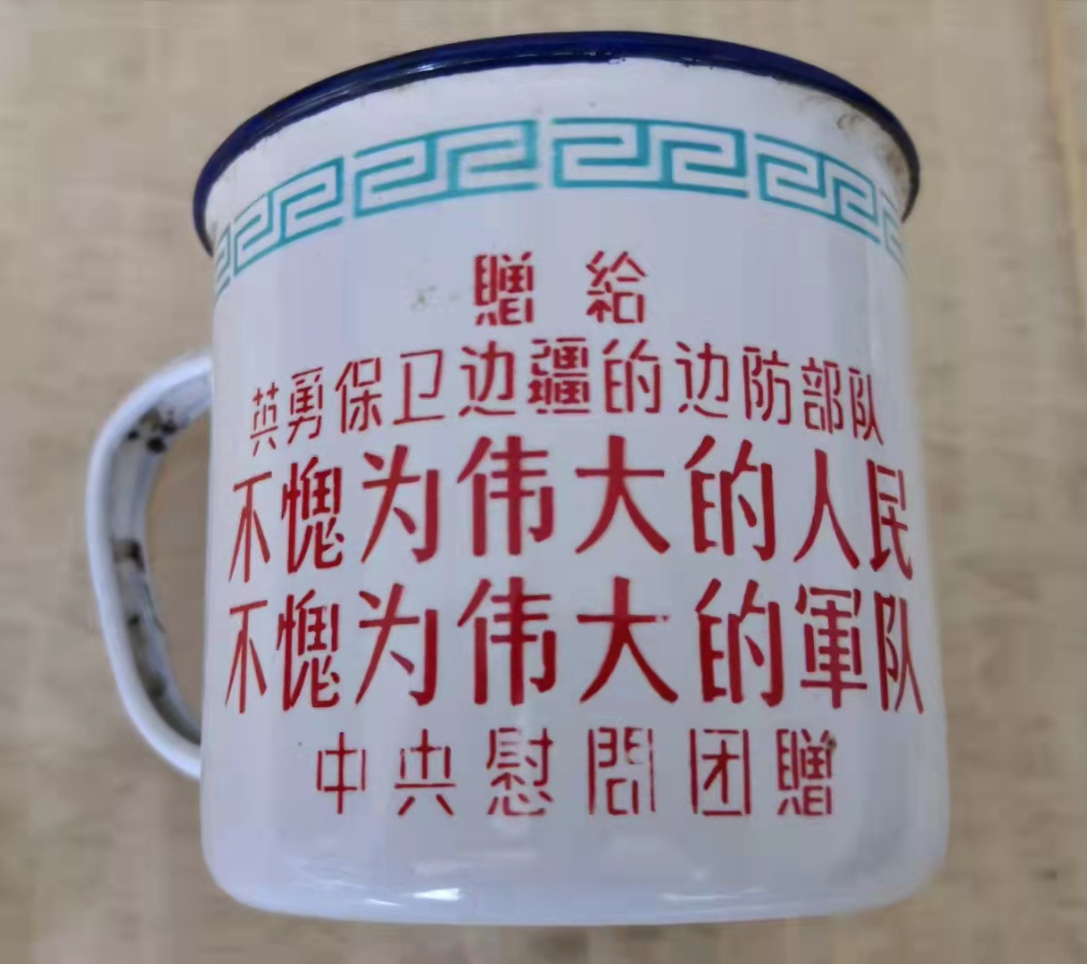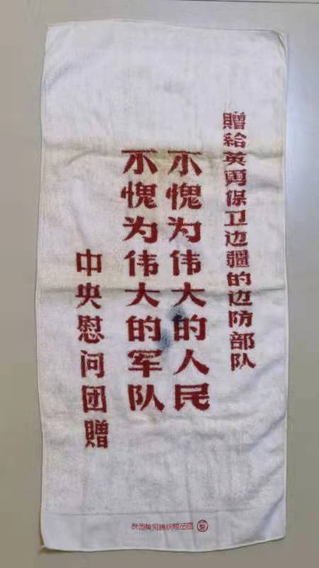 2019年父亲病重时,他把珍藏了五十多年的物品交给了我,一个帽徽、一个陶瓷杯子和一条毛巾,父亲对我说:“我把这些跟了我一辈子的东西转交给你,是传承,也是念想。”帽徽是当年他参加中印边境自卫反击战时军帽上的,帽徽上的五角星里面是“八一”2字;陶瓷杯子和毛巾是当年中央慰问团到西藏前线慰问参战人员的纪念品,上面印有“赠给英勇保卫边疆的边防部队”、“不愧为伟大的人民,不愧为伟大的军队”、“中央慰问团赠”等字样。父亲在《亲历血与火的洗礼》中写到:“亲历了这段刻骨铭心的岁月,才深刻体会到这些话的分量及其深刻的含义。”