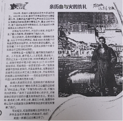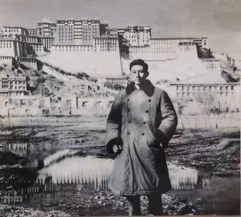 几十年来,父亲的书桌上一直摆放着二张老照片。一张是他在拉萨拍摄的英姿勃发的军装照,他在《亲历血与火的洗礼》一文中写到:“这张照片是我在西藏完成一项特殊任务后,从位于中印边界附近海拔4500米的隆子印军战俘营返回拉萨后,在布达拉宫前拍摄的。这张珍藏了半个世纪的照片,是我众多照片中最令我激动不已而回味无穷的。”