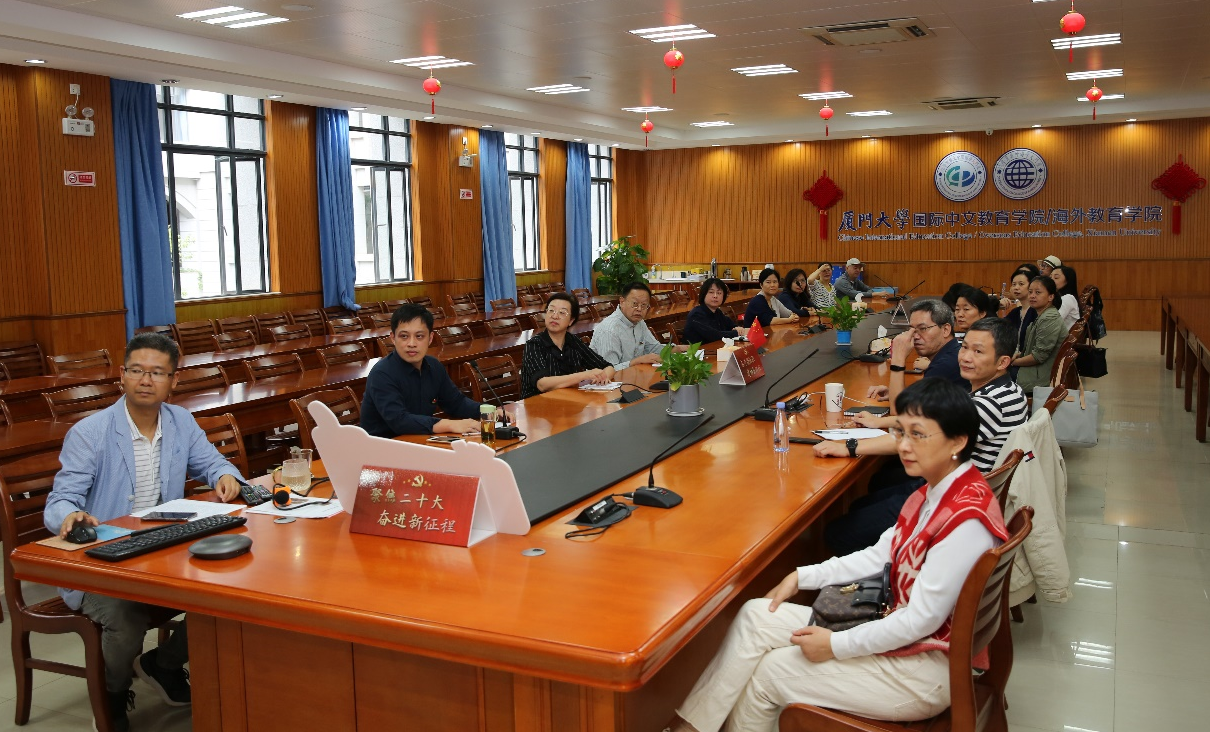 为深入领会和贯彻党的二十大精神,10月31日下午,国际中文教育学院/海外教育学院华文系教工党支部在坤銮楼C104会议室召开“学习宣传贯彻党的二十大精神 推动中华文化更好走向世界”学习党的二十大精神主题党日活动。华文系全体教师参加,副院长耿虎做领学,院党委书记范丽参会指导。活动由支部书记洪镔主持。