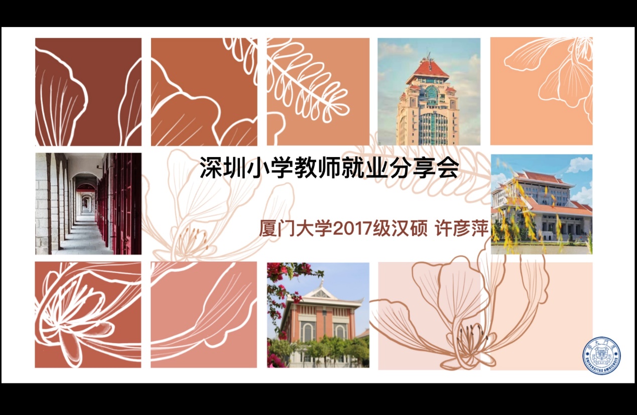第二位分享嘉宾是教招上岸深圳南山区某小学的2017级院友许彦萍学姐,她从教师校招的角度给大家分享了深圳市校招教师岗上岸经验。首先,许彦萍学姐分享了自己作为小学语文老师和班主任的工作经验与工作感悟,还有教师未来规划、南山区教师待遇、在深圳工作生活的感受等等。随后,许彦萍学姐为同学们提出了一些深圳市教招上岸的详细建议,如关注各大学校的公众号,提前投递简历联系学校,提前准备自我介绍,提前准备好说课、试讲等等。最后,学姐特别强调:在面试中“眼缘”很重要。面试时要谦逊有礼,落落大方,给面试官留下印象。经过学姐的介绍,高薪吸睛的深圳教师招聘对于同学们来说不再那么神秘。
