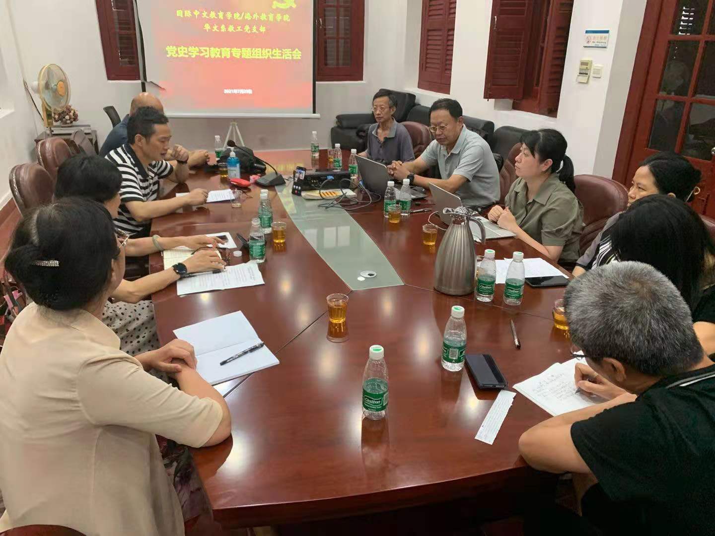 7月29日,国际中文教育学院/海外教育学院党政班子成员以普通党员身份参加了各自所在党支部的党史学习教育专题组织生活会,同支部党员们一起学习讨论、一起交流心得、一起接受党性教育,共同推动党史学习教育往深里走、往实里走。