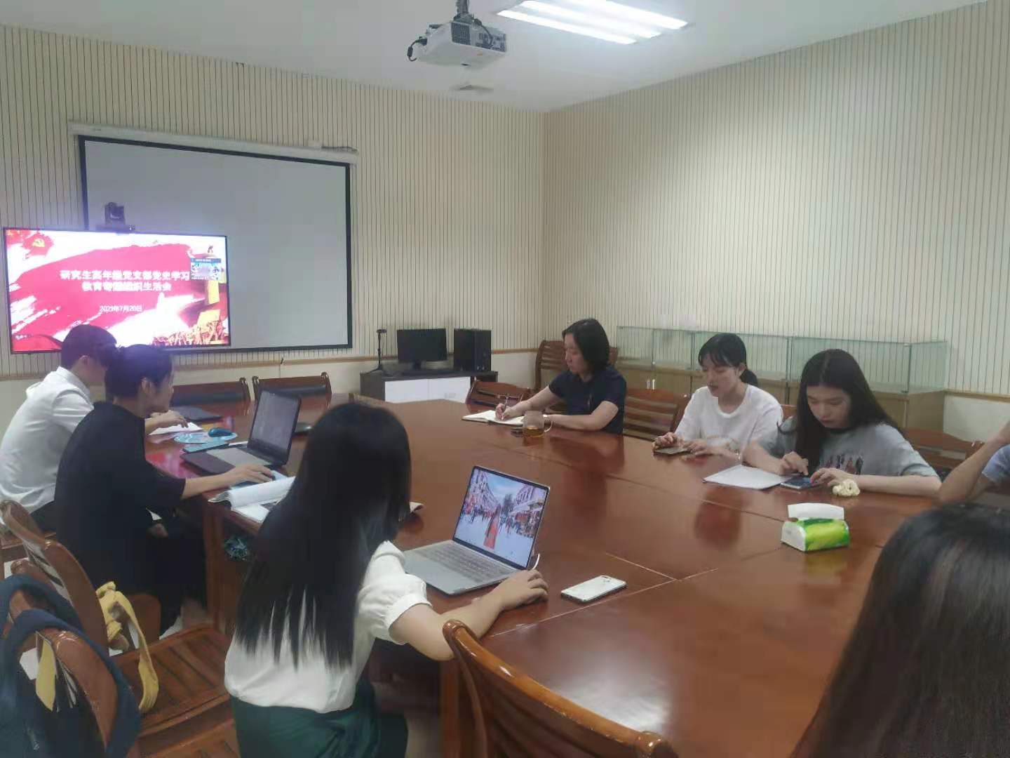 为深入学习领会《中共中央关于在全党开展党史学习教育的通知》、《党史学习教育实施工作方案》等文件精神,切实做好党史学习教育贯彻落实工作, 7月20日上午,国际中文教育学院/海外教育学院研究生高年级党支部在坤銮楼B409会议室采用线上和线下相结合的方式召开党史学习教育专题组织生活会,会议由漆苏平同志主持,学院党委副书记吴荻老师莅临指导。
