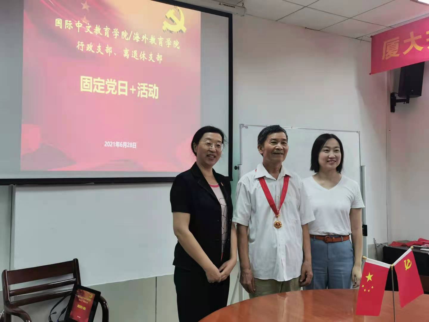 为“光荣在党50年”的老同志颁发纪念章,是中国共产党成立100周年庆祝活动的重要组成部分。这是我党首次颁发此类纪念章,颁发“光荣在党50年”纪念章,不仅体现了以习近平同志为核心的党中央对老党员的关心、关怀和褒扬,也极大地增强了党员的荣誉感、归属感、使命感。在党50多年的老党员们兢兢业业为党工作,为我党教育事业作出了积极贡献。老党员是党和国家的宝贵财富,也是学院持续发展不竭的动力,国际中文教育事业面临着新的机遇和挑战,在几代人的长期不懈的努力奋斗中,厦门大学国际中文教育事业一定能焕发出新的生机与活力。(图文/张峰 审校/洪伟)