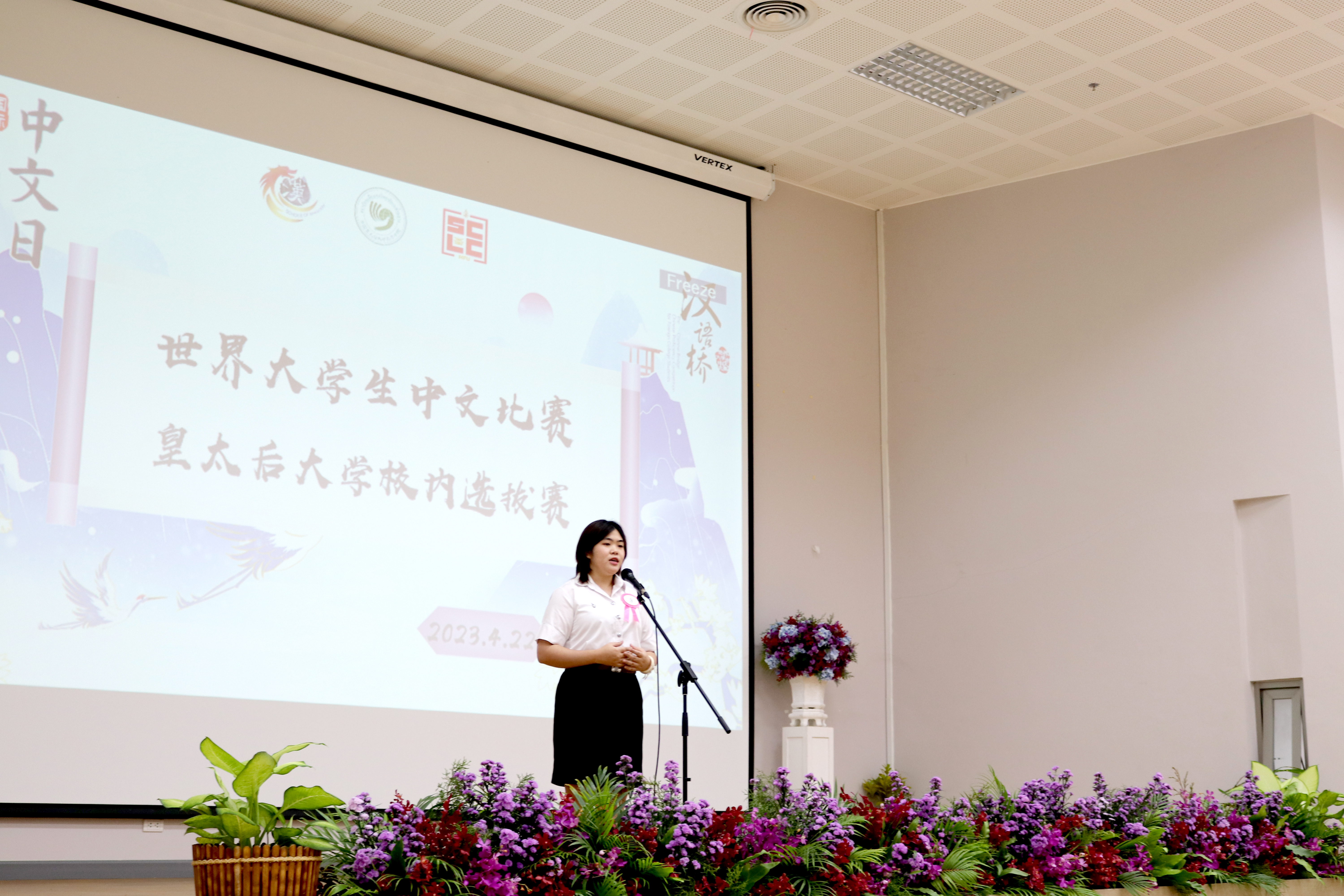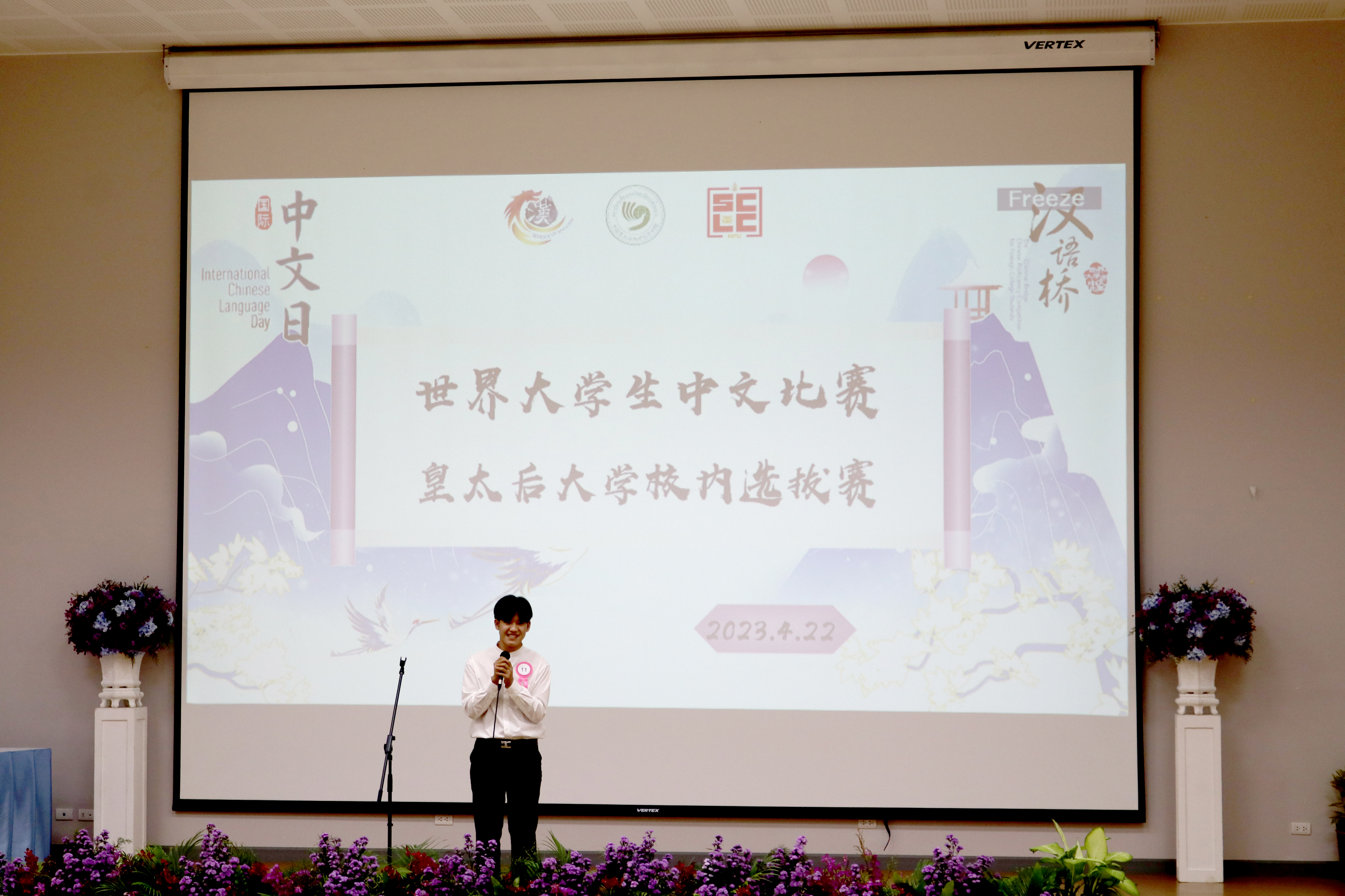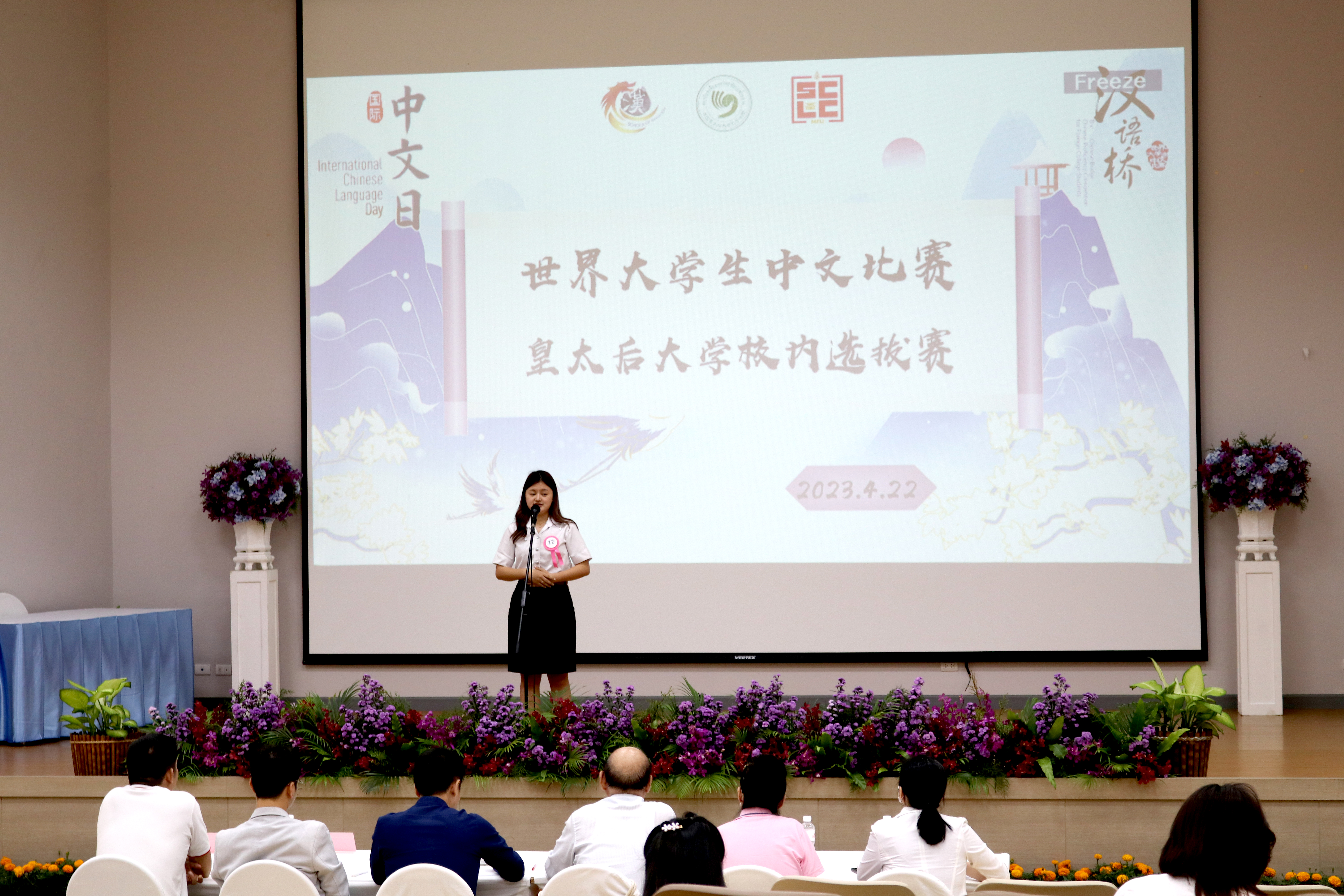 在欢度宋干节的喜庆余温和共庆“国际中文日”的欢乐氛围中,2023年第二十二届“汉语桥”皇太后大学校内选拔赛复赛于4月22日在皇太后大学E4教学楼隆重举行。