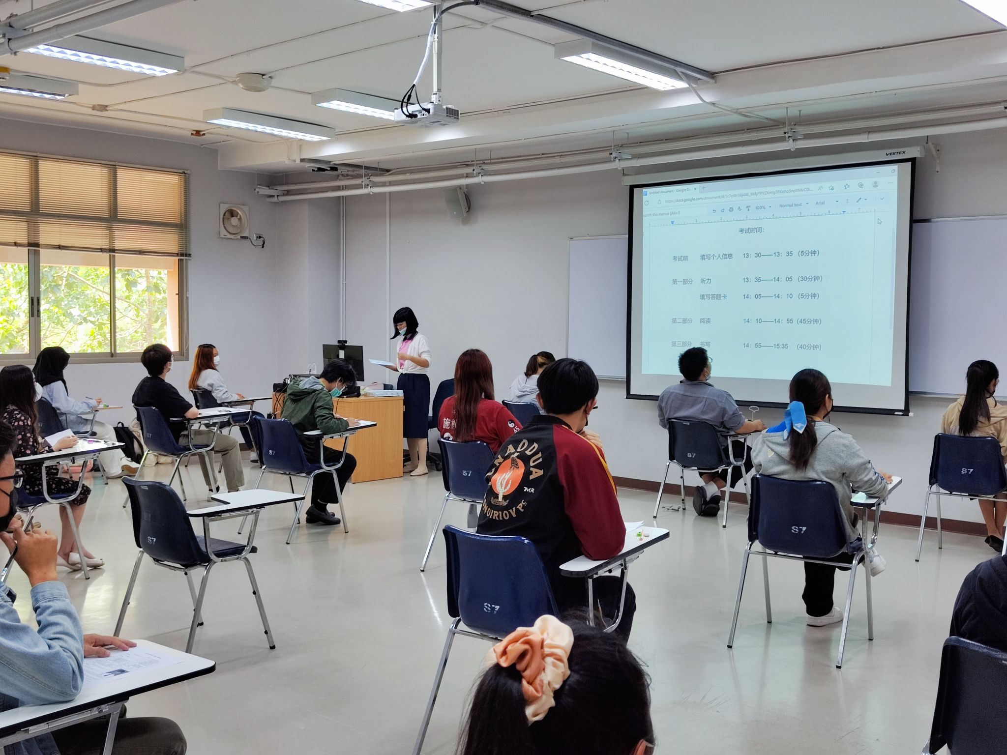 本次HSK&HSKK考试共设七个考场,其中以HSK四级和HSKK中级人数居多,分别达到66人和77人。此外,当天也是皇太后大学期中考试时间,在紧张的考试氛围下,皇太后孔院各考场的考试依旧有条不紊地开展。