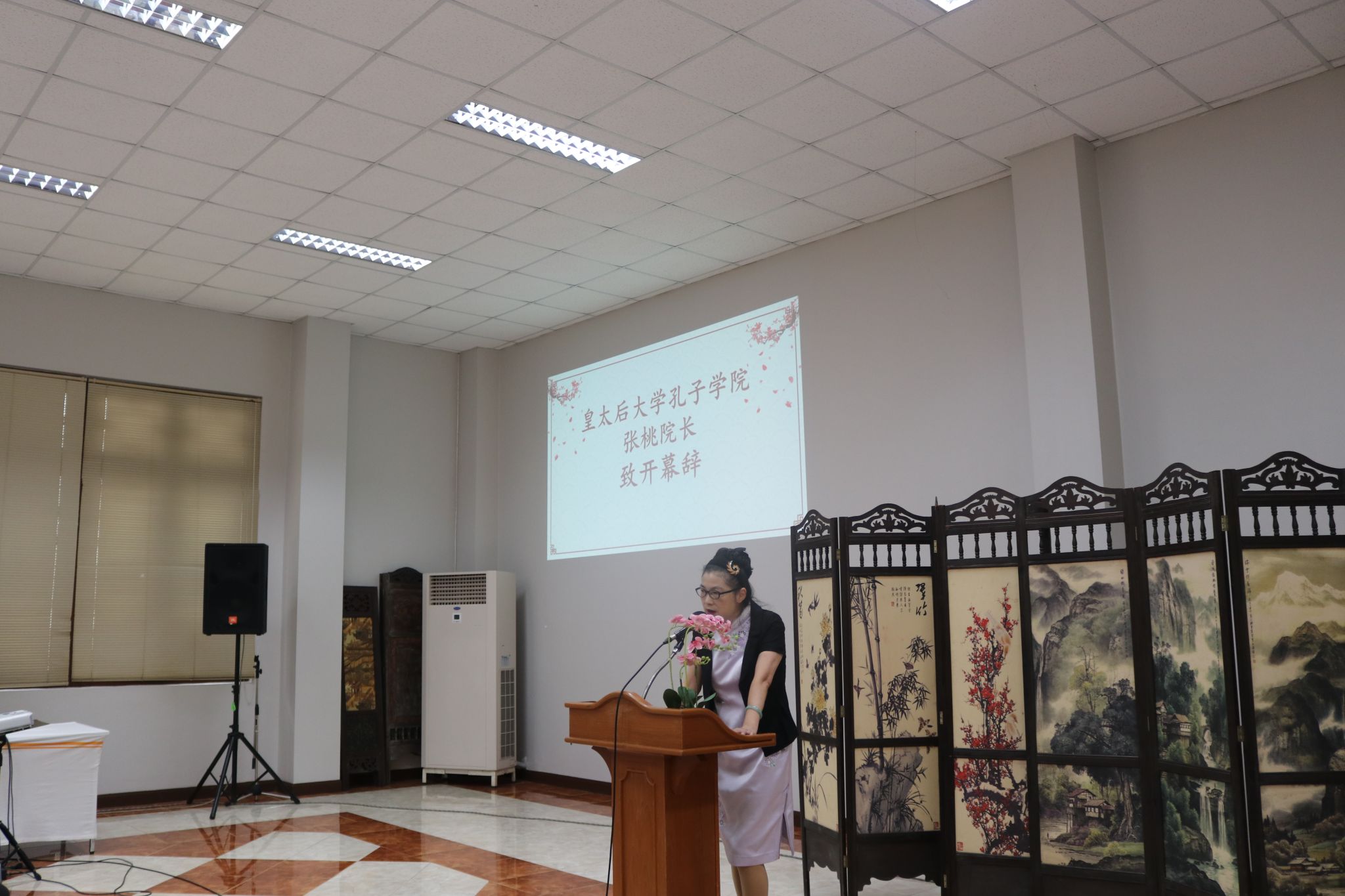 皇太后大学孔院张桃院长为带队老师颁发证书