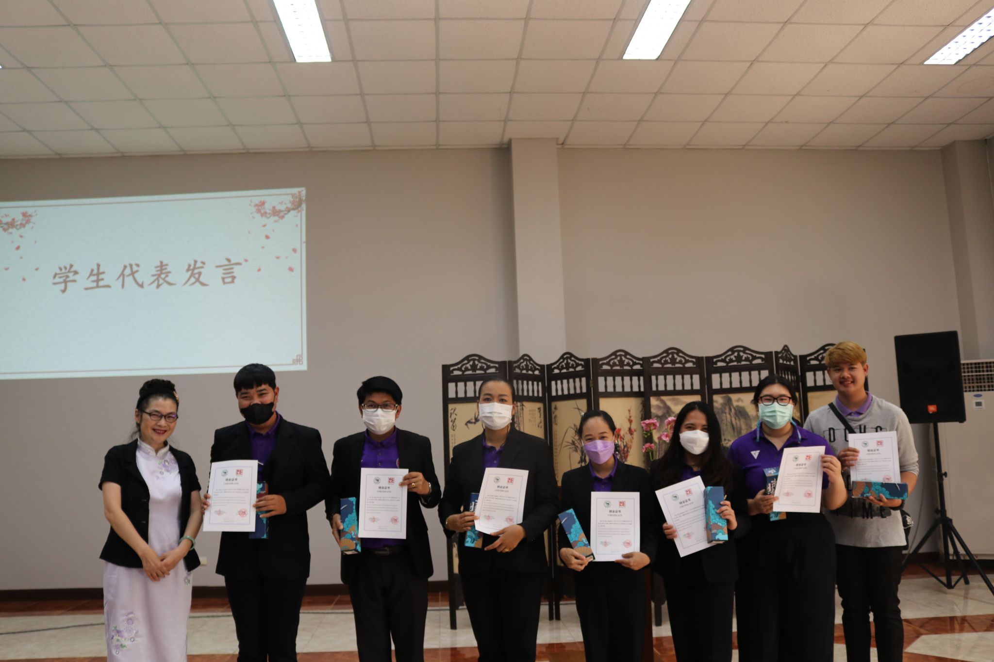 皇太后大学孔院张桃院长为学生代表颁发证书