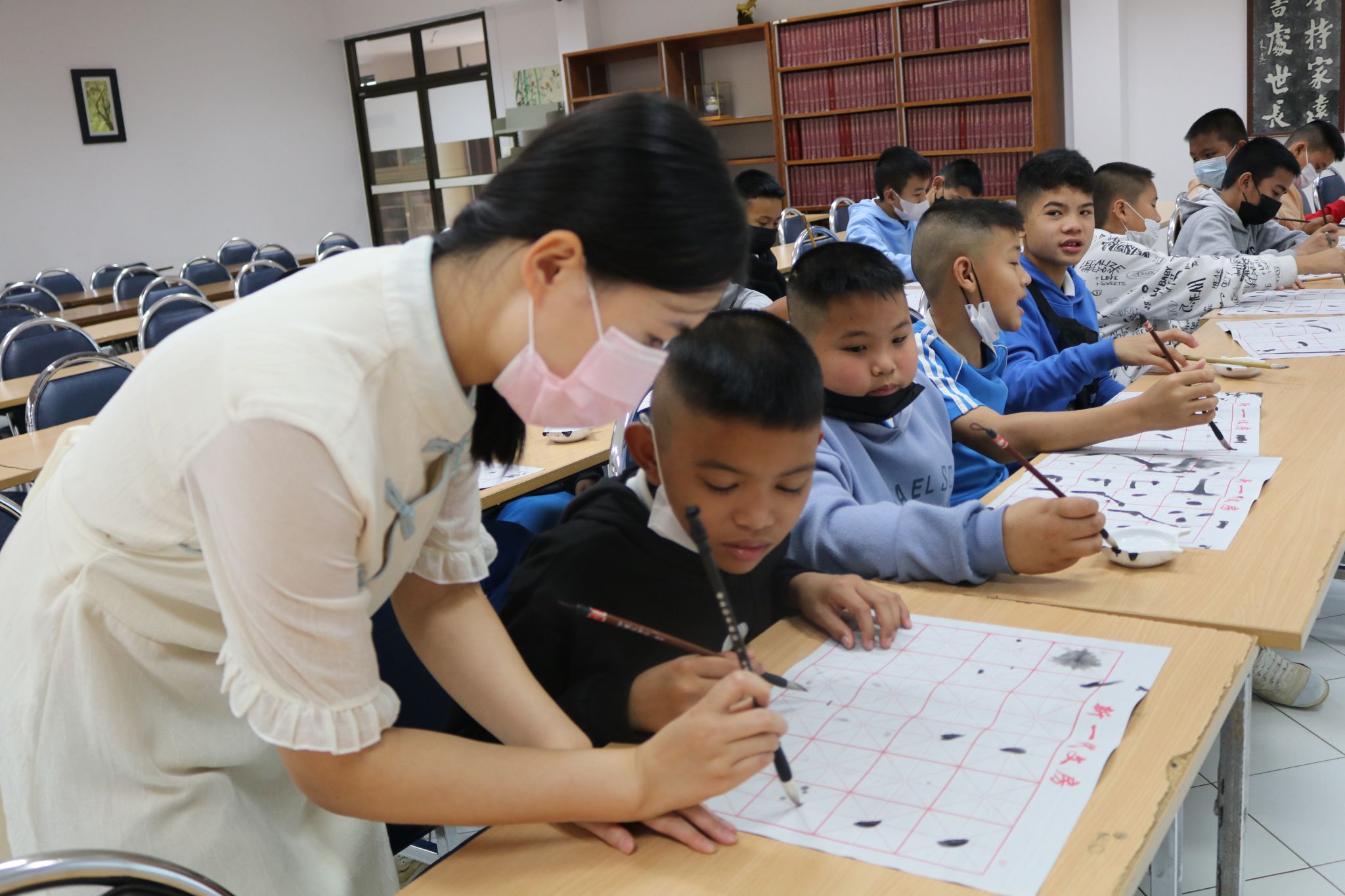 文化营上,孔院教师袁沛云为学生们带来了中国书法课。袁老师引导学生逐步掌握书法的基本功和技巧,如握笔、用笔、按笔、起笔等,并讲解示范了常用的笔画和基本的结构要素。接着她带领学生复习熟悉的数字,书法与古诗教学相结合,“一去二三里,烟村四五家······”,学生们边书写汉字边吟诵朗朗上口的诗歌,培养了学生的审美能力和文化素养。