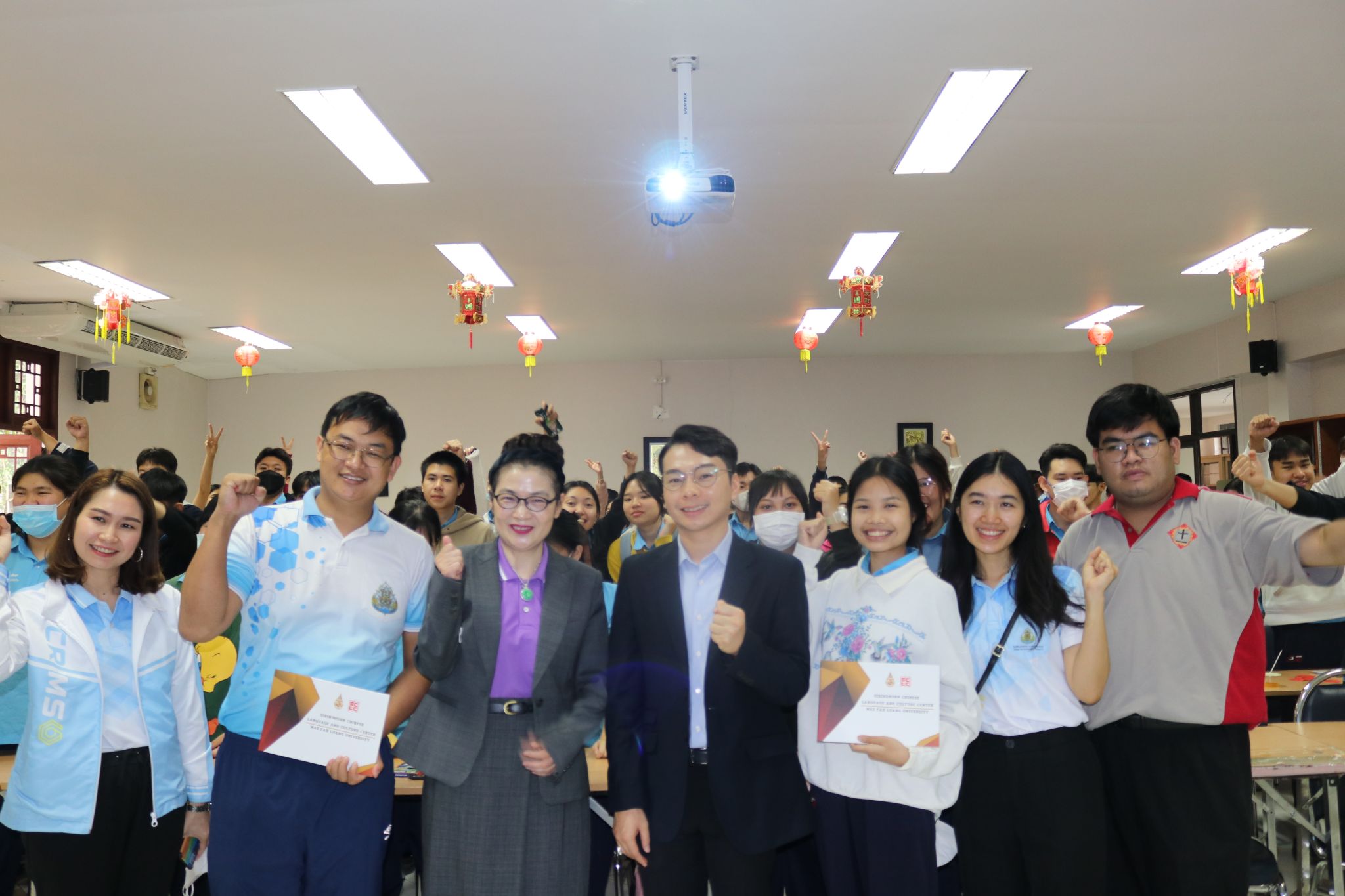 闭幕式上,中心徐哲明博士与孔院张桃院长为参加此次文化营活动的教师与学生颁发证书。张桃寄语,很开心看到同学们在此次文化营活动中收获颇丰,欢迎更多的学生前来体验更丰富的文化课程、共同探索中文的无穷魅力。最终全体师生合影留念,活动在师生道谢中圆满结束。