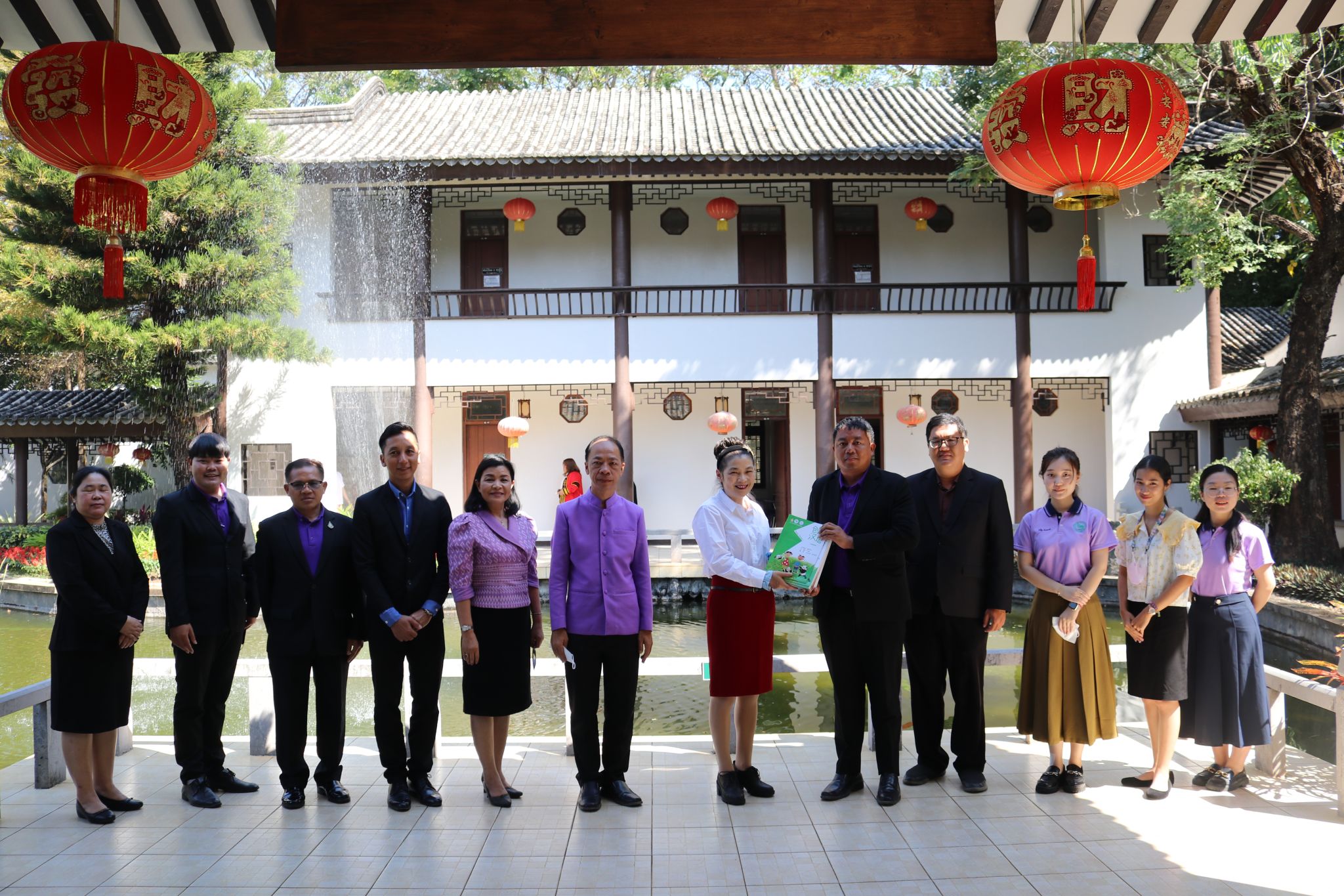 当地时间2月7日上午,清莱市巴格达镇长Mr.Damrongsak Kwanchai 及巴格达镇第一中学校长.Mr.Wittawat Somsakul一行9人到访皇太后大学孔子学院参观交流。皇太后大学孔院院长张桃携教师袁沛云、韩丹、范梓硕、欧阳希进行了热情接待并展开座谈。