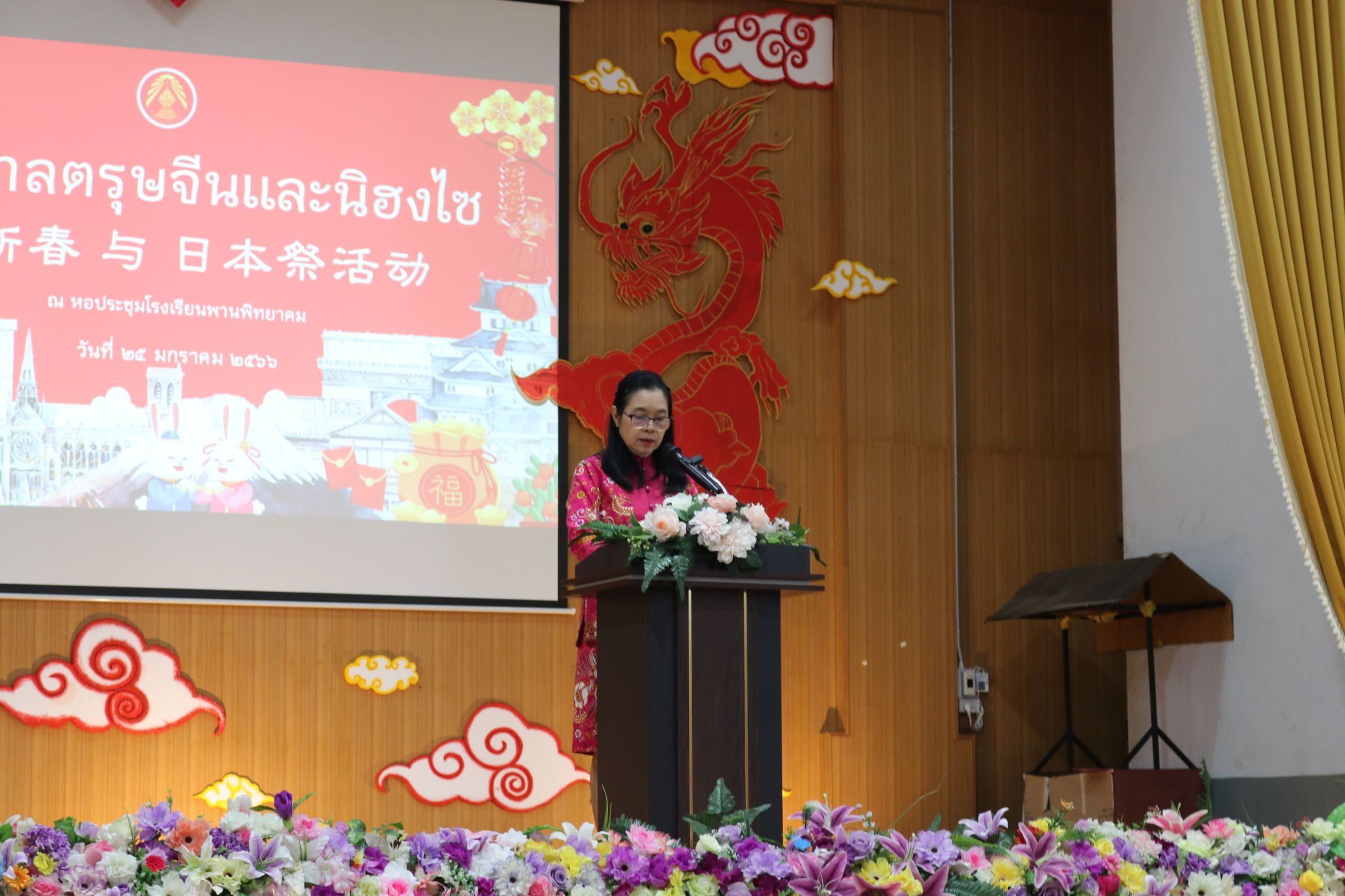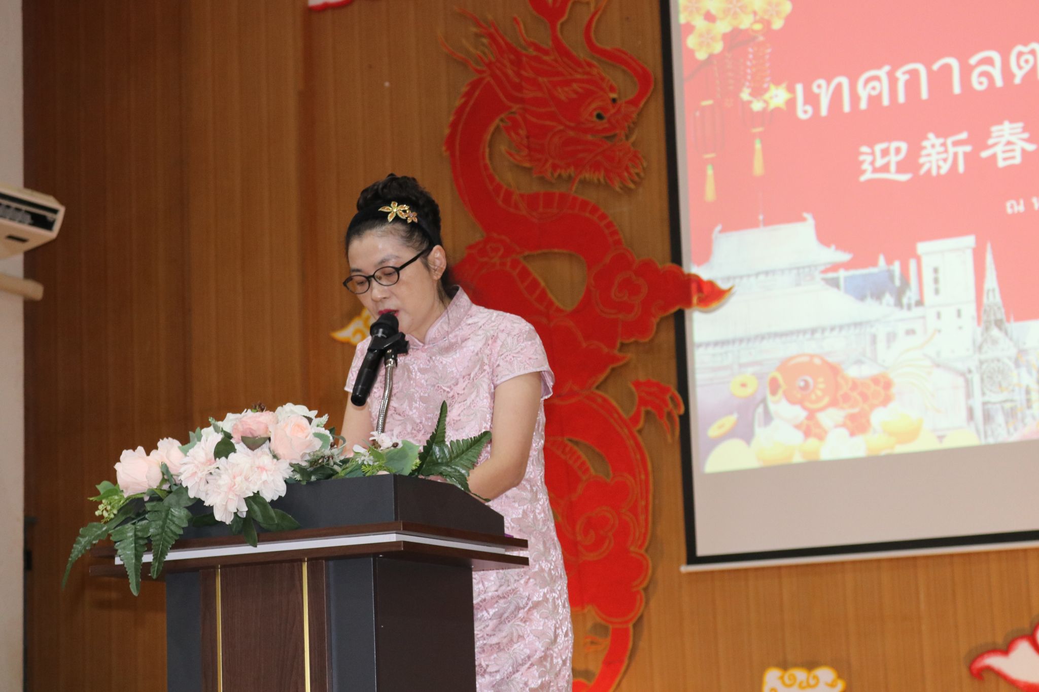 活动伊始,攀县中学校长Ms.Pawinee Suksawat致新春贺词。她首先对张桃院长及各位教师的到来表示热烈欢迎,对孔院长期以来对攀县中学开展汉语教学和举办活动方面给予的帮助表示感谢。同时,她表示春节是中国人与亲朋好友团圆欢聚的时刻,祝贺孔子学院全体师生春节快乐,兔年吉祥。
